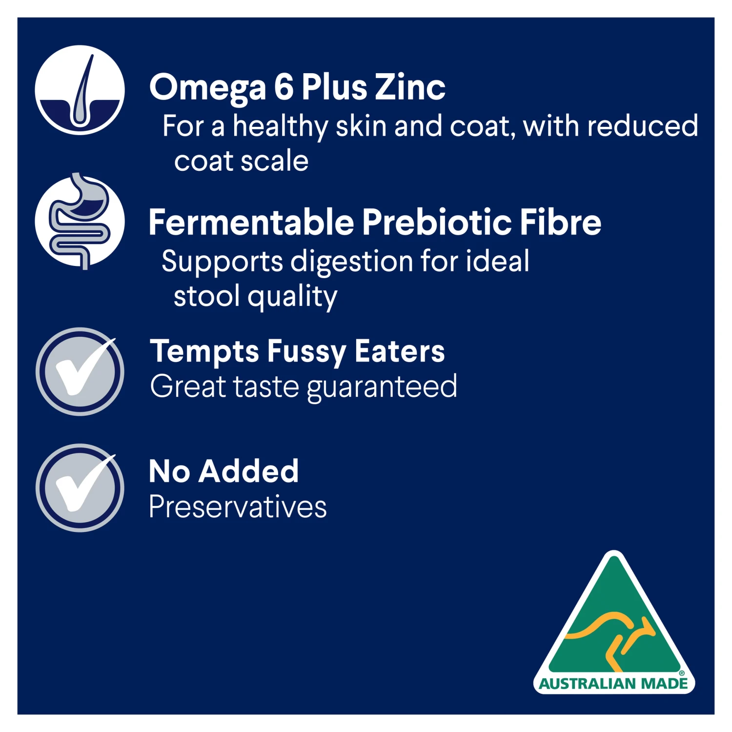 - Fermentable Prebiotic Fibre Supports digestion for ideal stool quality