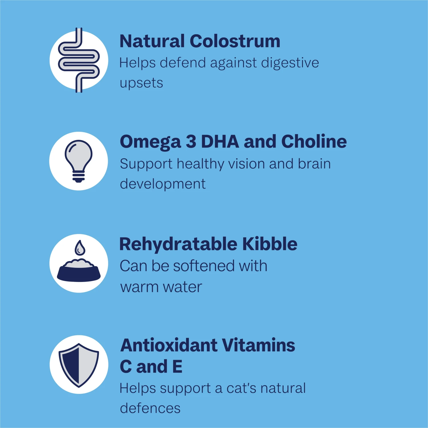 - Contains natural fibre sources that aid in reducing the incidence of hairballs and their symptoms