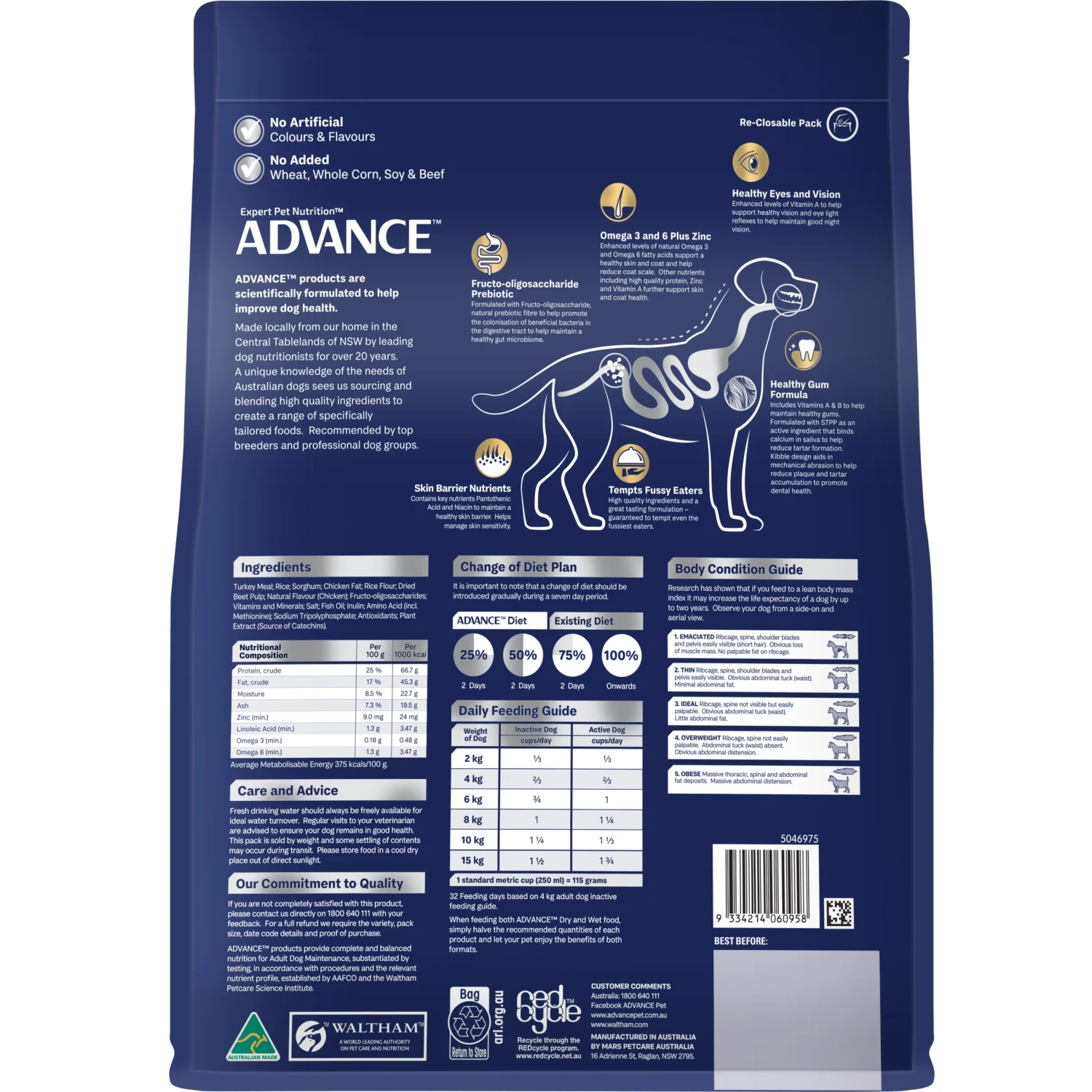 Advanceâ„¢ products are scientifically formulated to help improve dog health. Made locally from our home in the Central Tablelands of NSW by leading dog nutritionists for over 20 years. A unique knowledge of the needs of Australian dogs sees us sourcing and blending high quality ingredients to create a range of specifically tailored foods. Recommended by top breeders and professional dog groups.