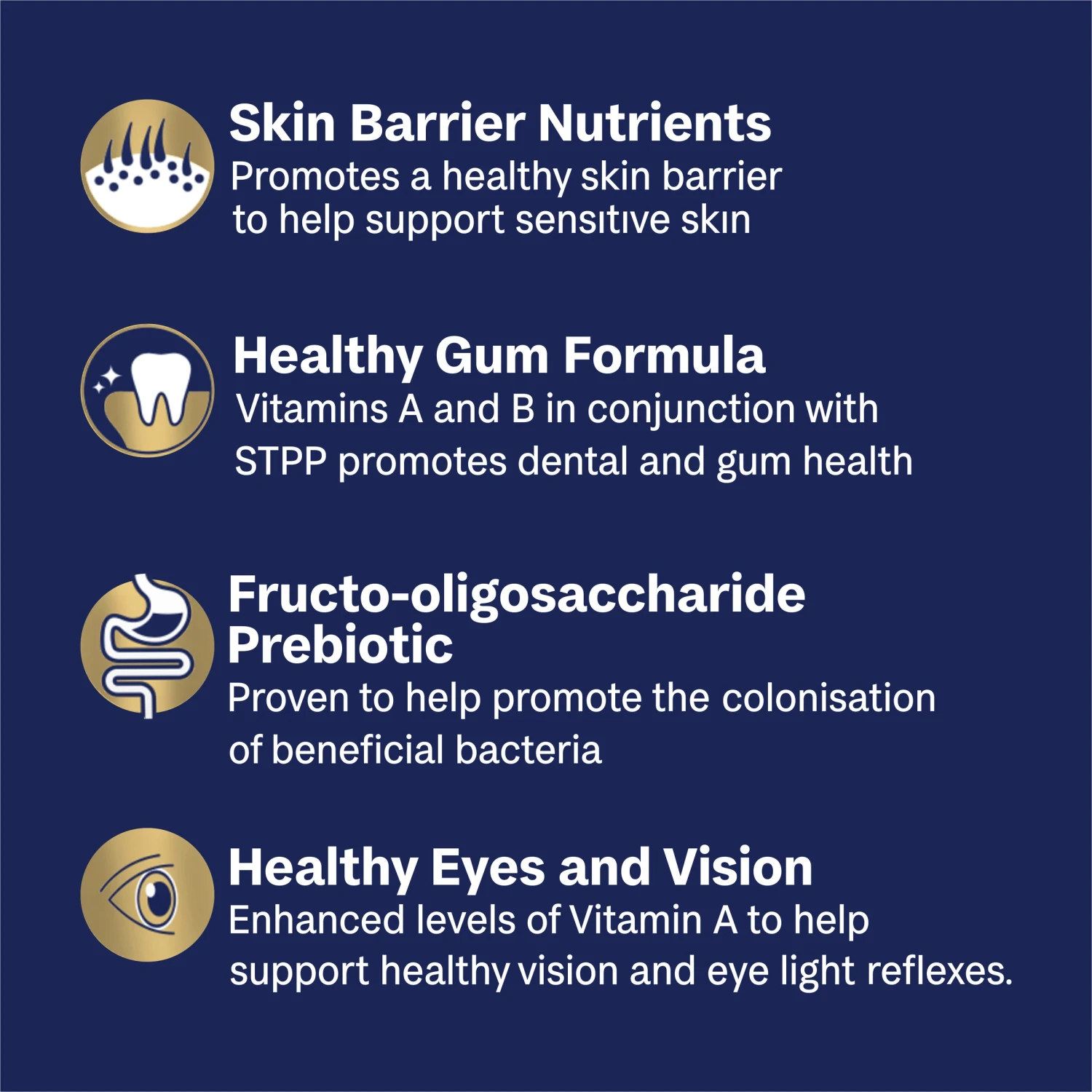 - Healthy Gum Formula Vitamins A and B in conjunction with STPP promotes dental and gum health