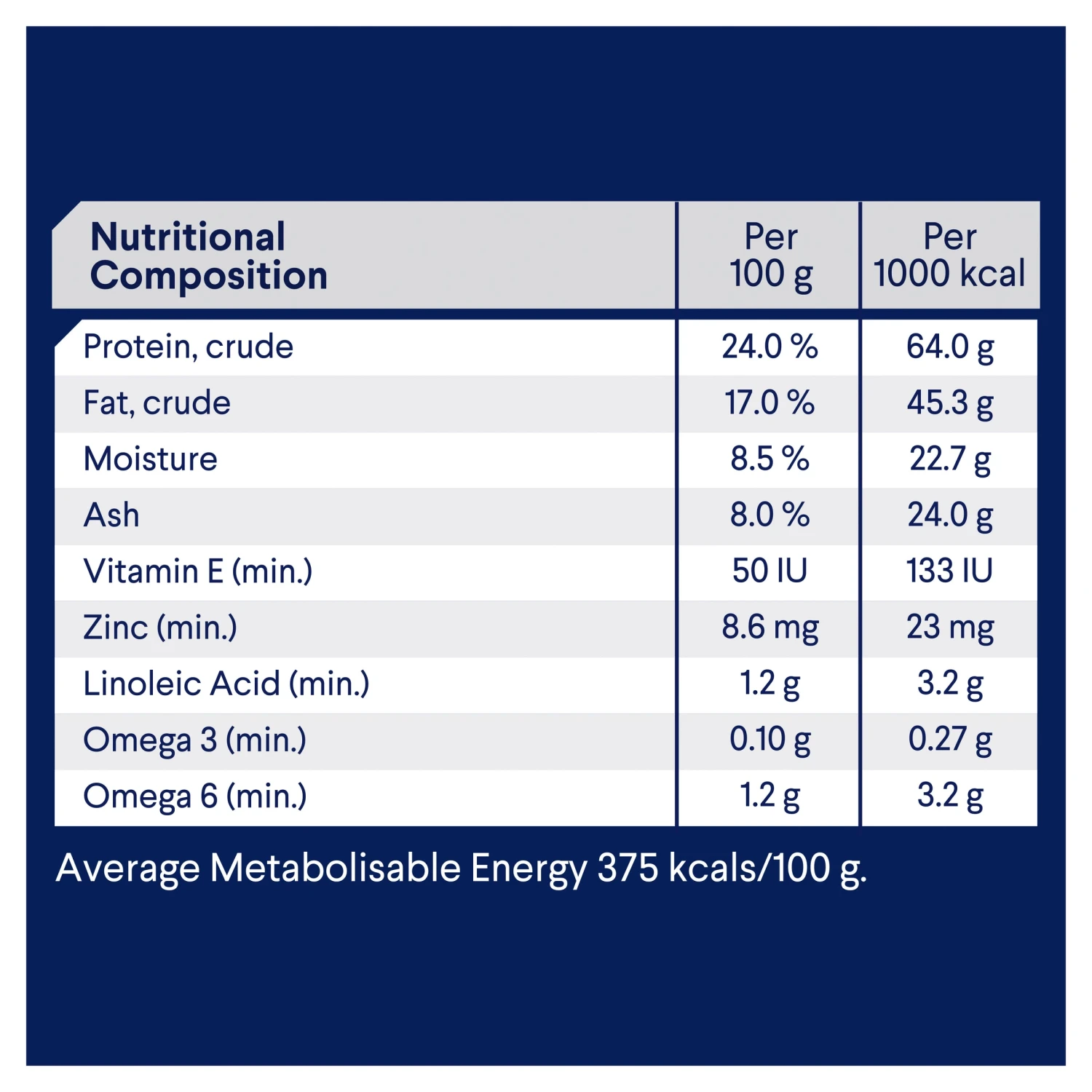 - Fermentable Prebiotic Fibre: Supports digestion for ideal stool quality
