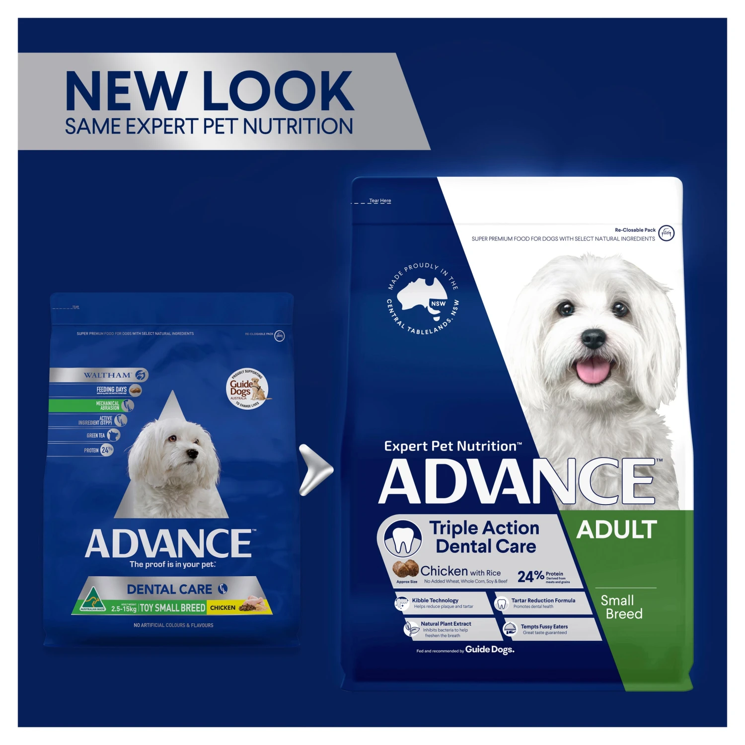 Advance Triple Action Dental Care Small Breed Dry Dog Food delivers optimal nutrition for Australian pets by combining global science with local expertise and select natural ingredients. Advance products are uniquely formulated for Australian pets.