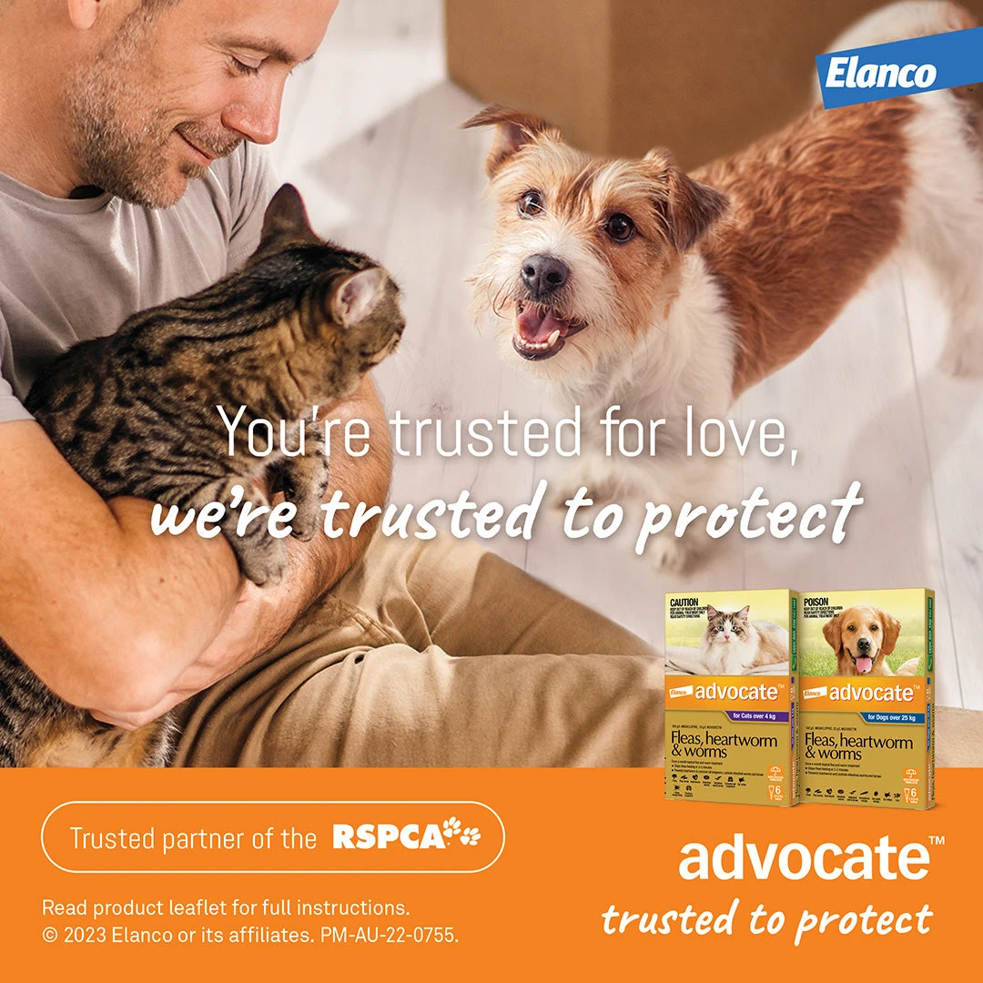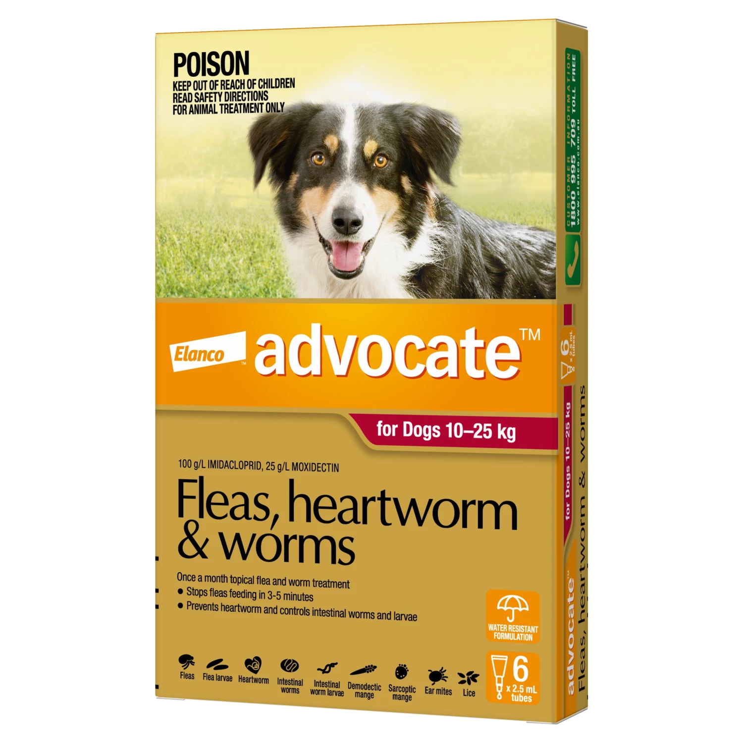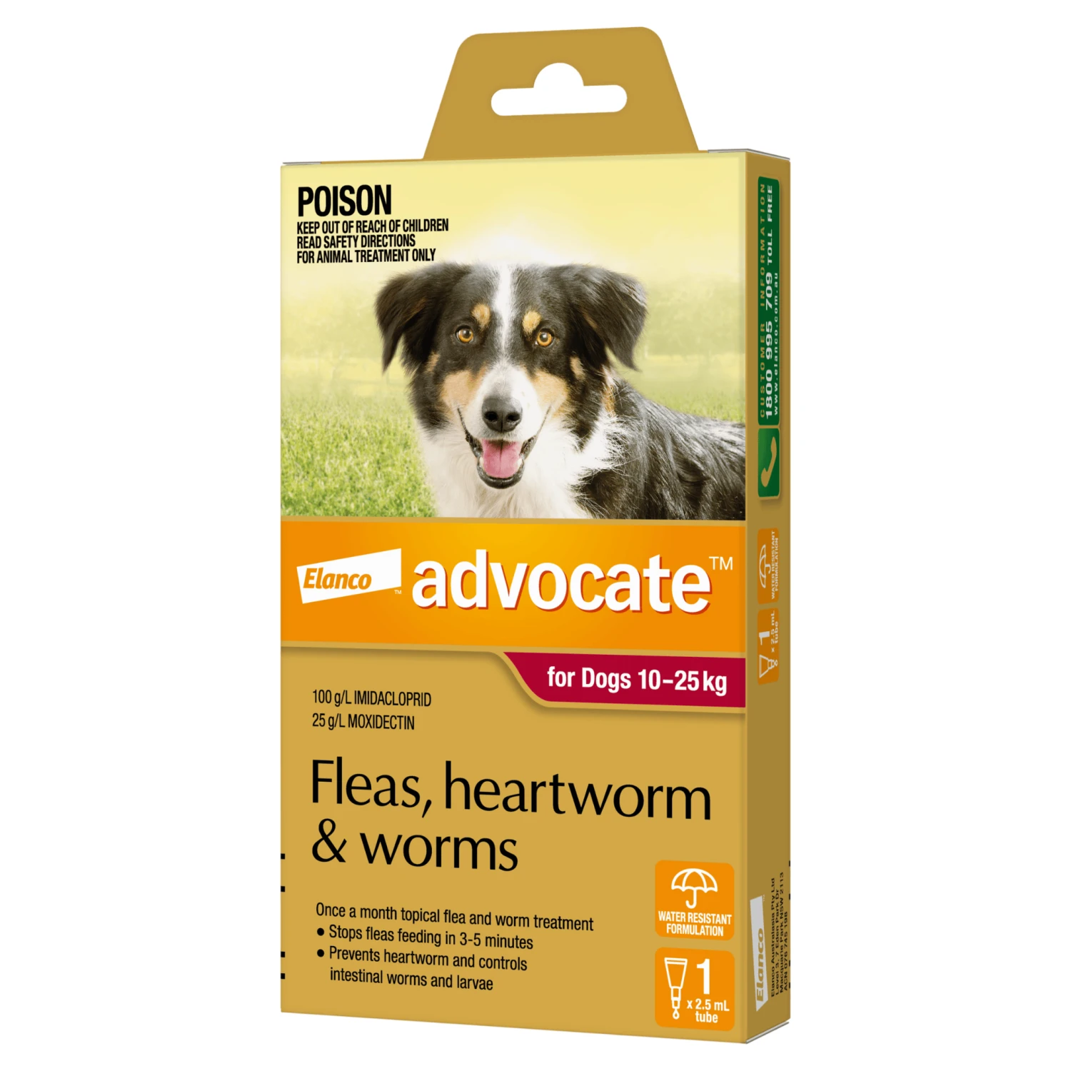 Advocate is an easy to use, monthly spot-on treatment that protects your dog from fleas, heartworm, major intestinal worms and ear mites.