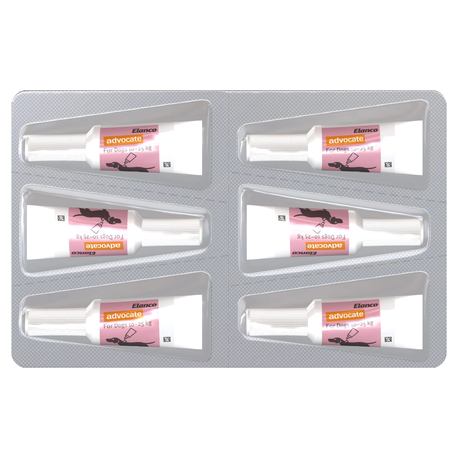 Advocate is one of the most broad spectrum topical preventative products available for your dog. It provides fast and effective relief from fleas, killing adult fleas and their larvae within 20 minutes of application, and continues to protect your dog for a whole month. When used monthly, advocate also protects your dog from deadly heartworm disease. Heartworm is spread by mosquito bite. Once matured, the adult worms live in the blood vessels of the heart and lung causing heartworm disease and sadly death if untreated. Advocate treats and controls most major intestinal worms of dogs, including roundworm, hookworm and whipworm. It also treats and prevents ear mites.