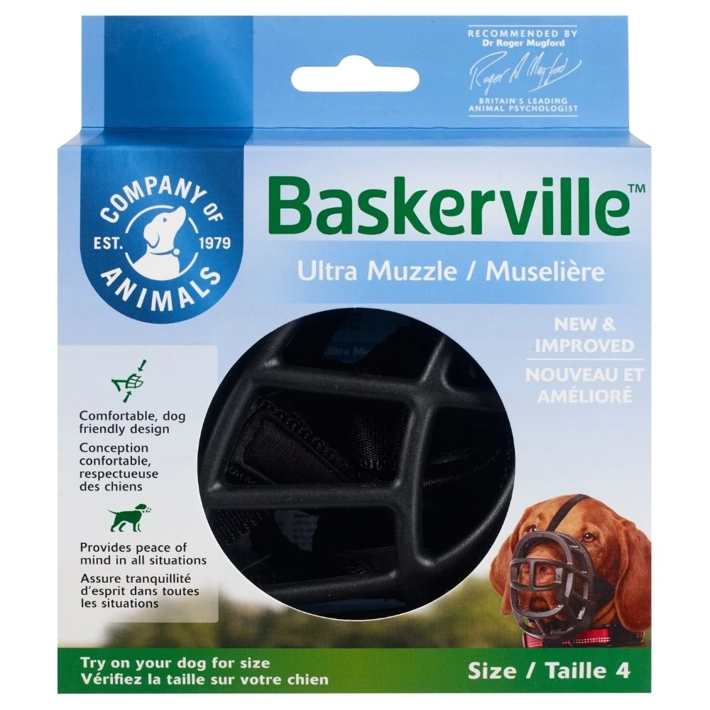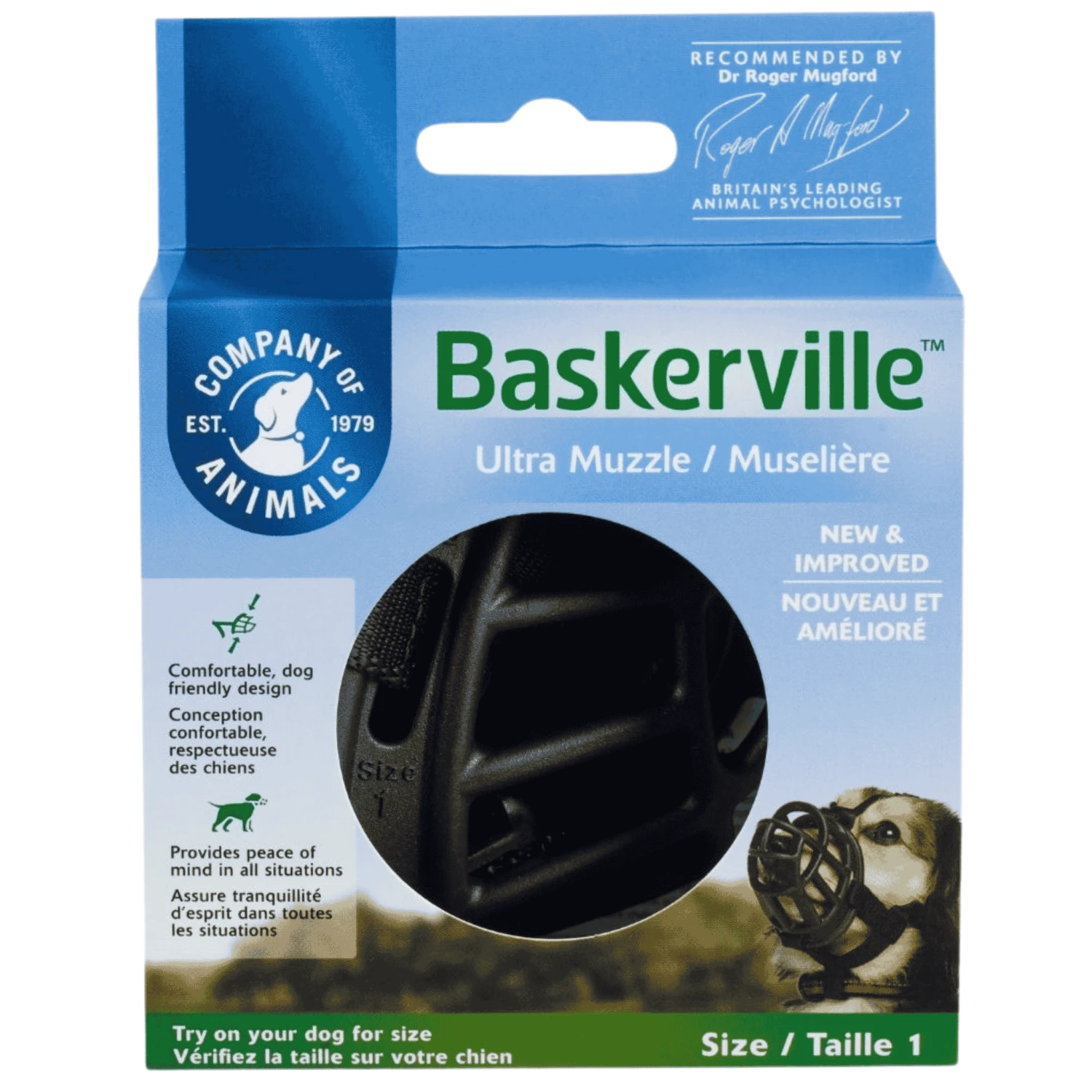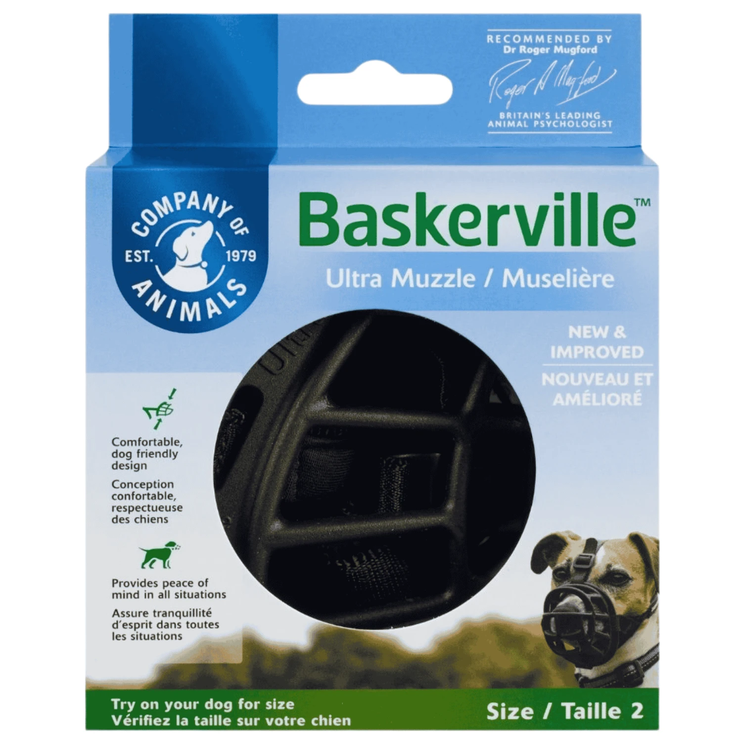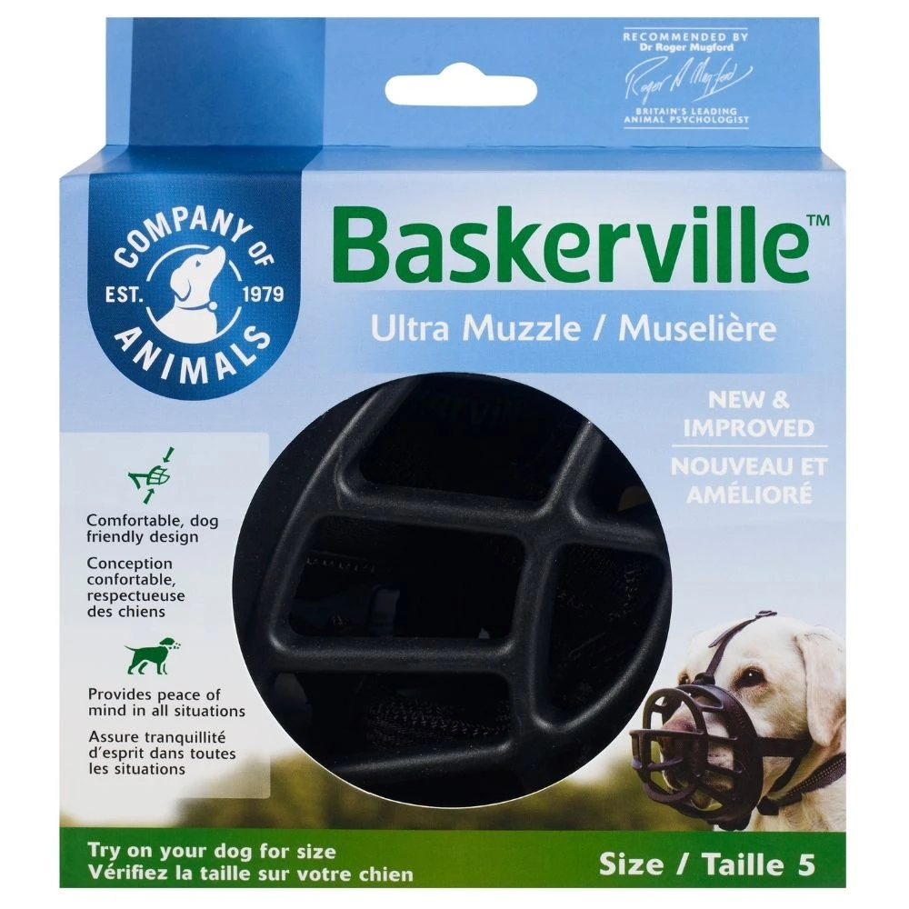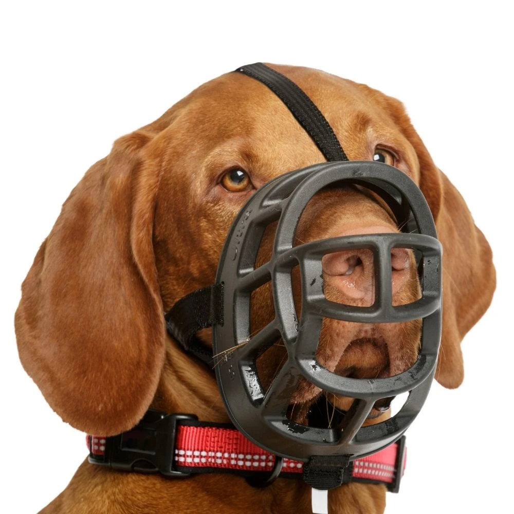 Safe Baskerville Ultra Muzzle, Patented Humane Design, Breathable, Dog can Pant and Drink, Adjustable, Padded, Dog Training Muzzle for Small, Medium, Large Dogs, Prevents Biting, Wildlife Scavenging.