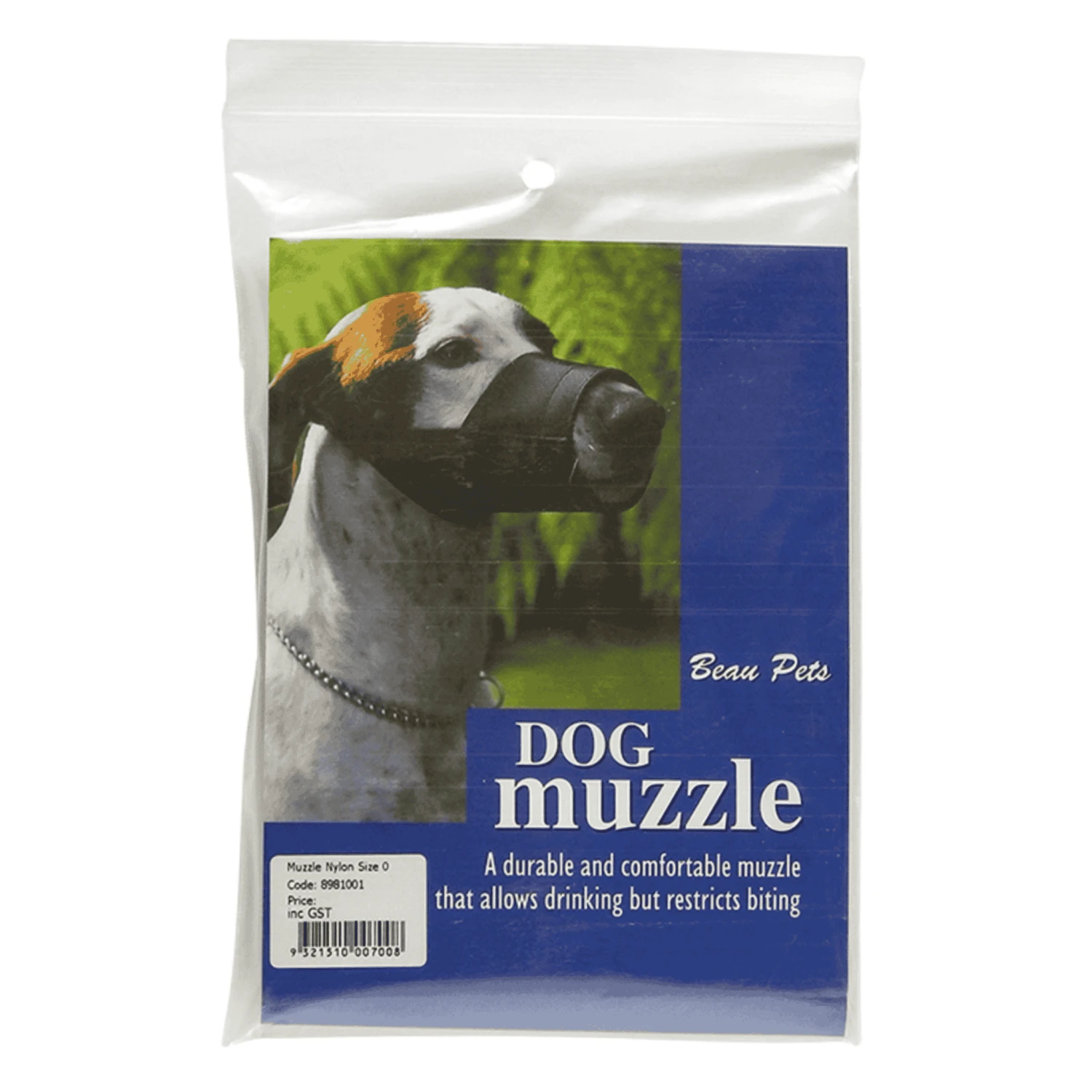 Strong nylon fabric muzzle which is soft and comfortable. Adjustable neck strap with quick release snap-lock buckle. To inhibit biting, chewing and barking.