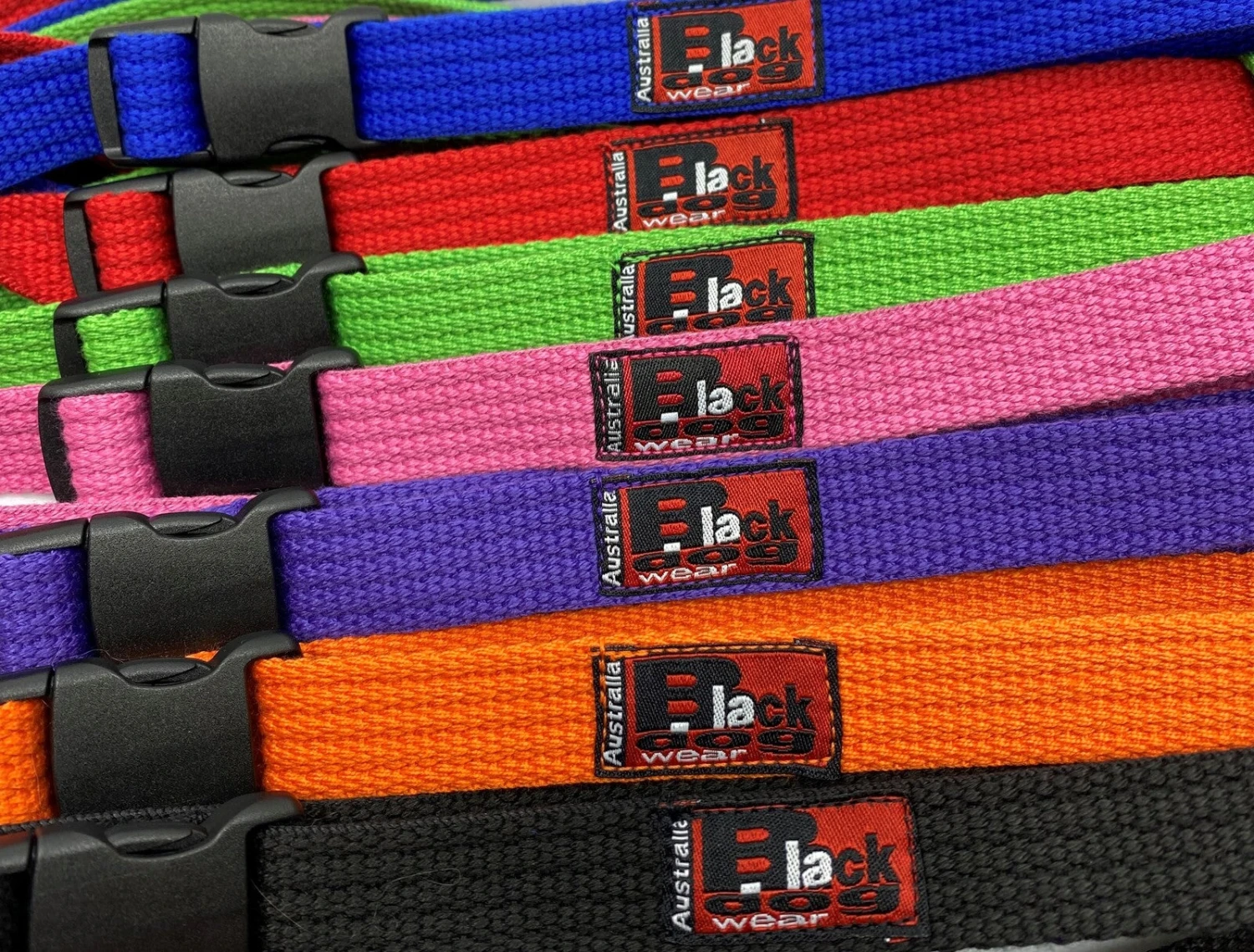 Length Adjustable 80cm to 150cm with buckle- 12, 20 or 25mm wide webbing – with corresponding sized snaphook.