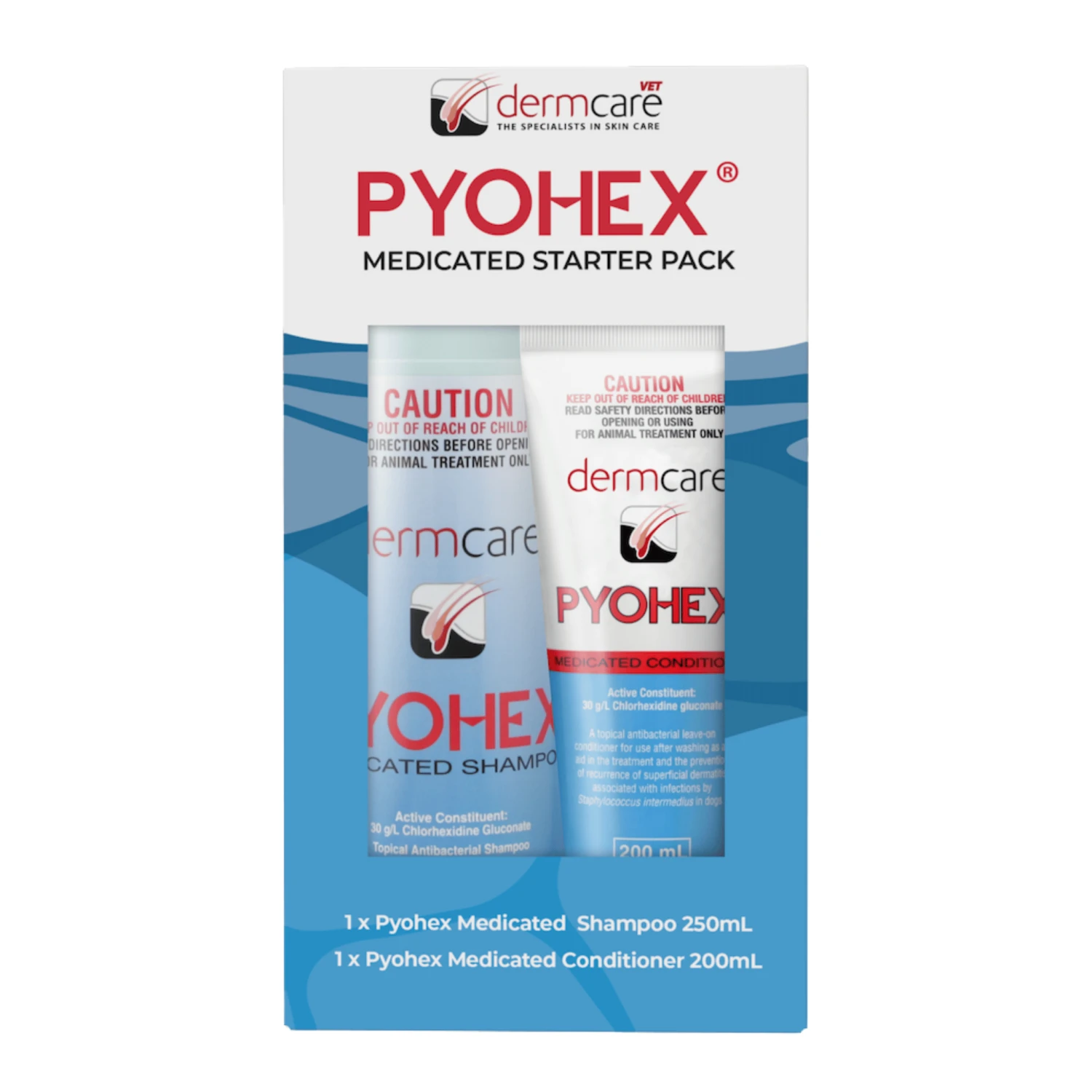 Dermcare Pyohex Medicated Conditioner is a leave-on medicated, coat conditioning lotion designed to be used in conjunction with Dermcare Pyohex Medicated Shampoo or other appropriate product, as recommended by your veterinarian.