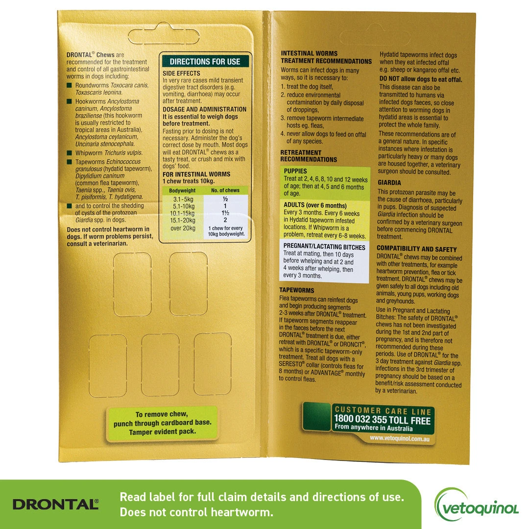 Drontal Dog Allwormer® is suitable for dogs of all shapes and sizes. It’s safe to use during pregnancy and lactation to keep worms at bay throughout your dog’s life.