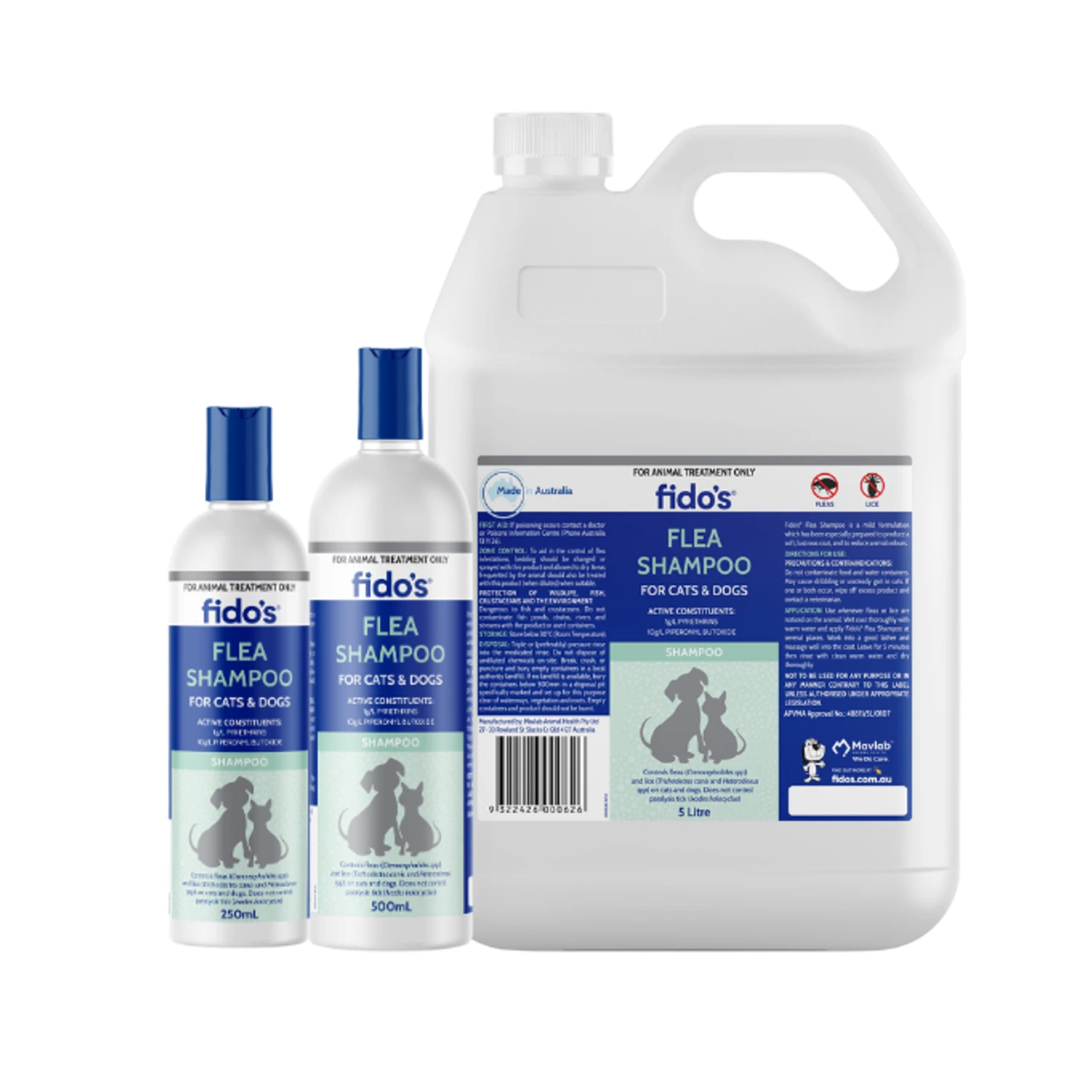 Fido’s Flea Shampoo is a pleasant smelling, soap-free shampoo that contains the natural insecticide pyrethrin. It controls fleas and ticks on dogs and cats. Safe to use on puppies and kittens.