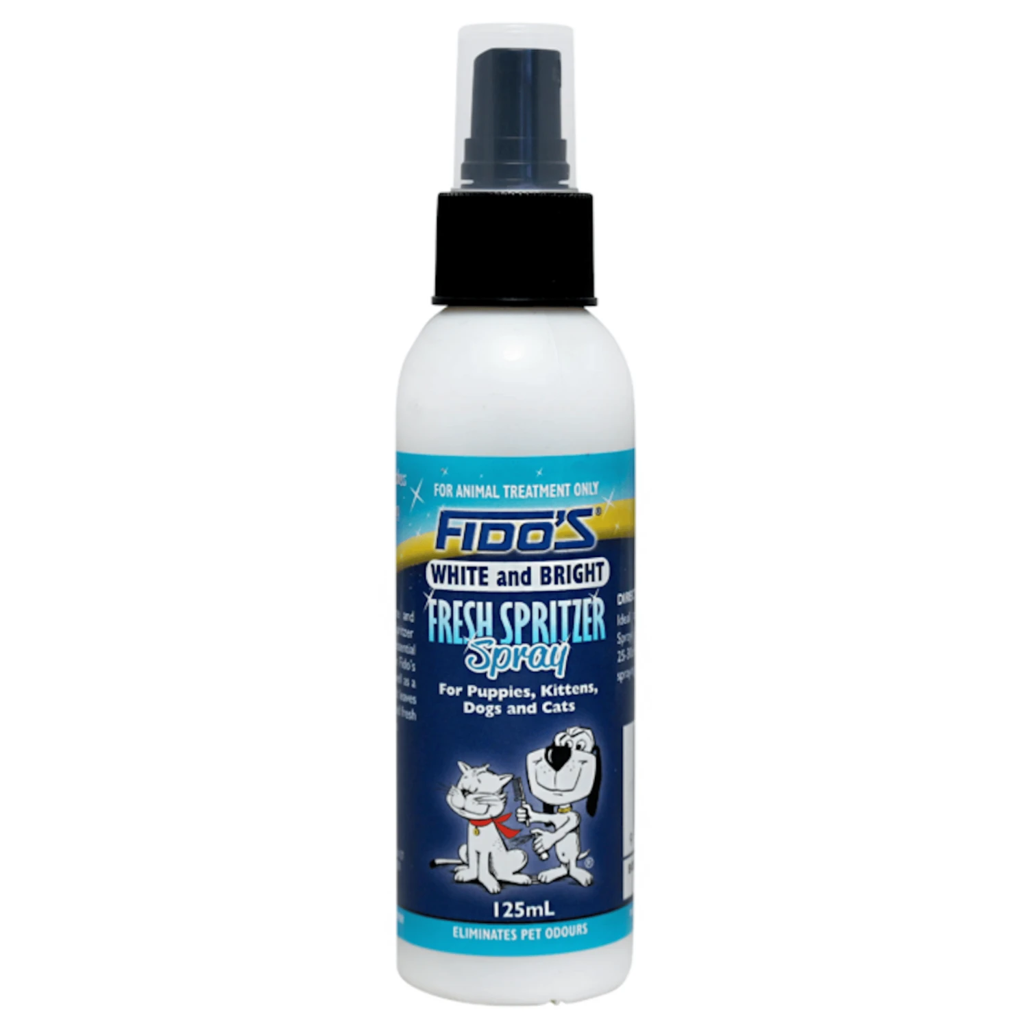 Fido’s Fresh Spritzer Spray White & Bright contains a fresh floral scent – the same as that used in the Fido’s White and Bright Shampoo. Also assists in conditioning and detangling the coat.