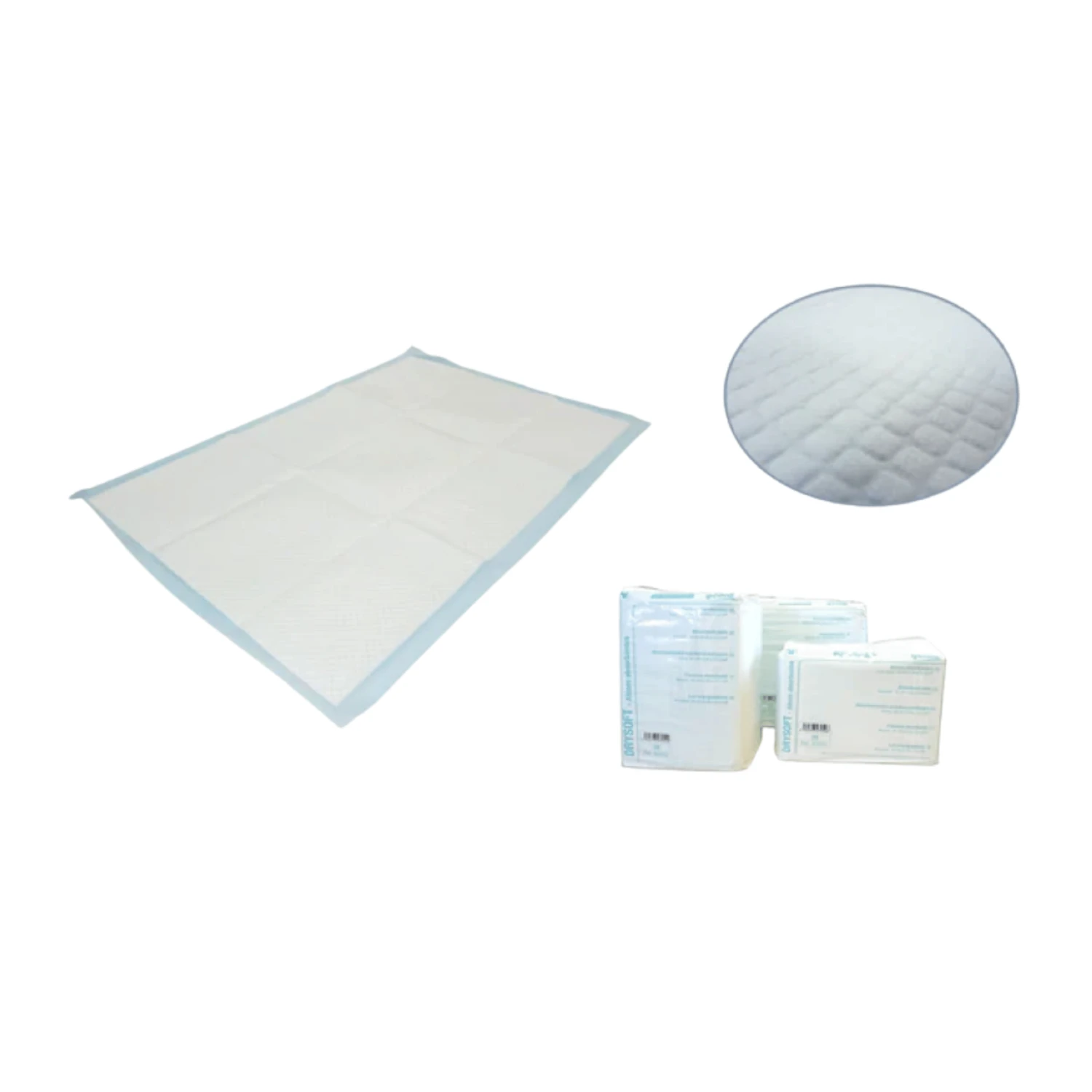Super absorbent draw sheet, silky and comfortable made of an absorbent polymer gel layer (SAP*) covered with a cellulose thin layer and resting on an impermeable and non skid non woven layer.
