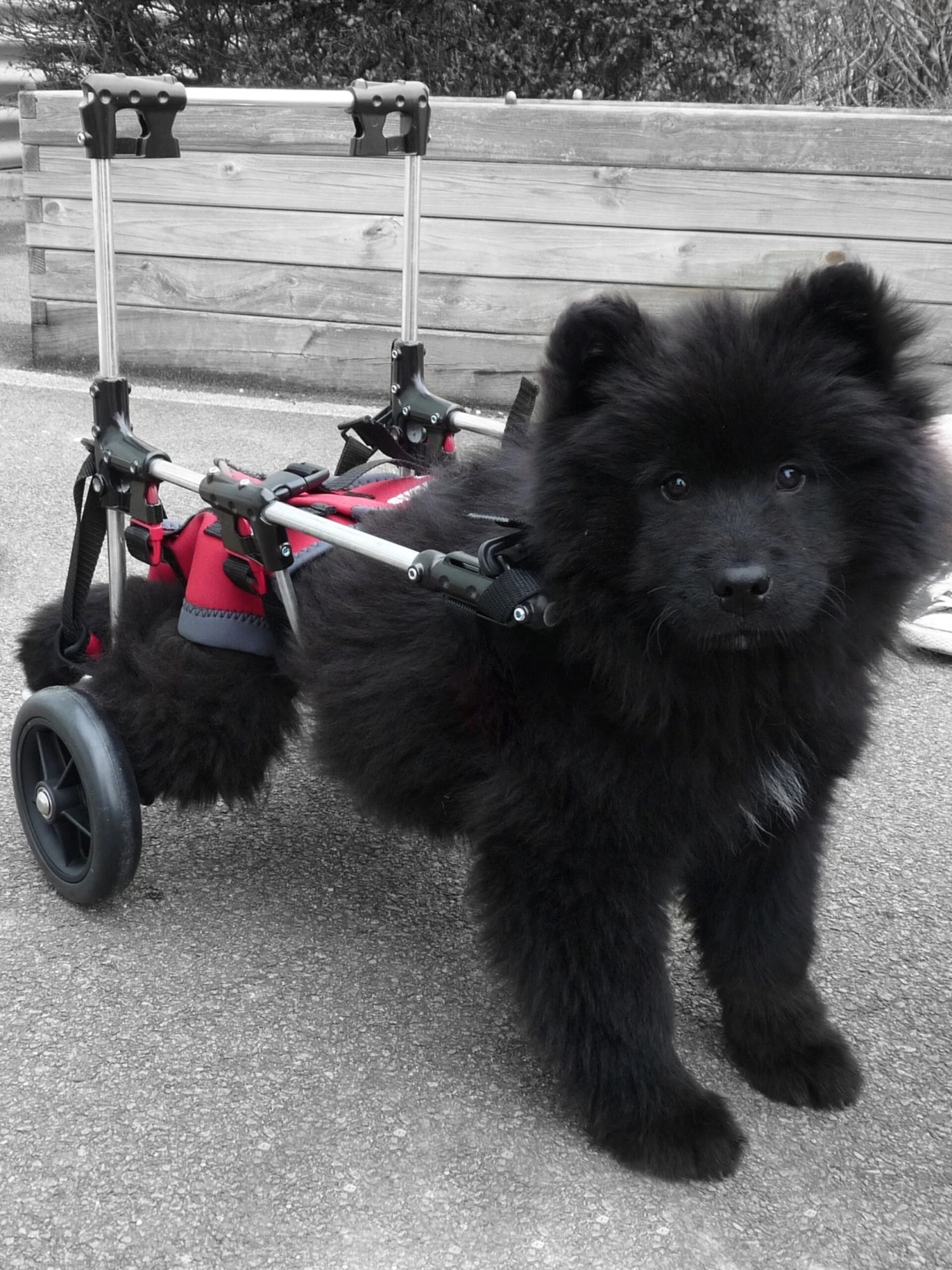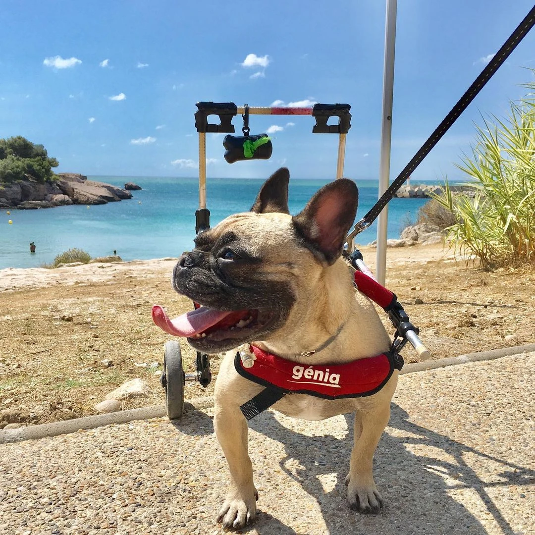 Mobility cart to support the hind legs of dogs and cats in case of partial or total mobility loss.
