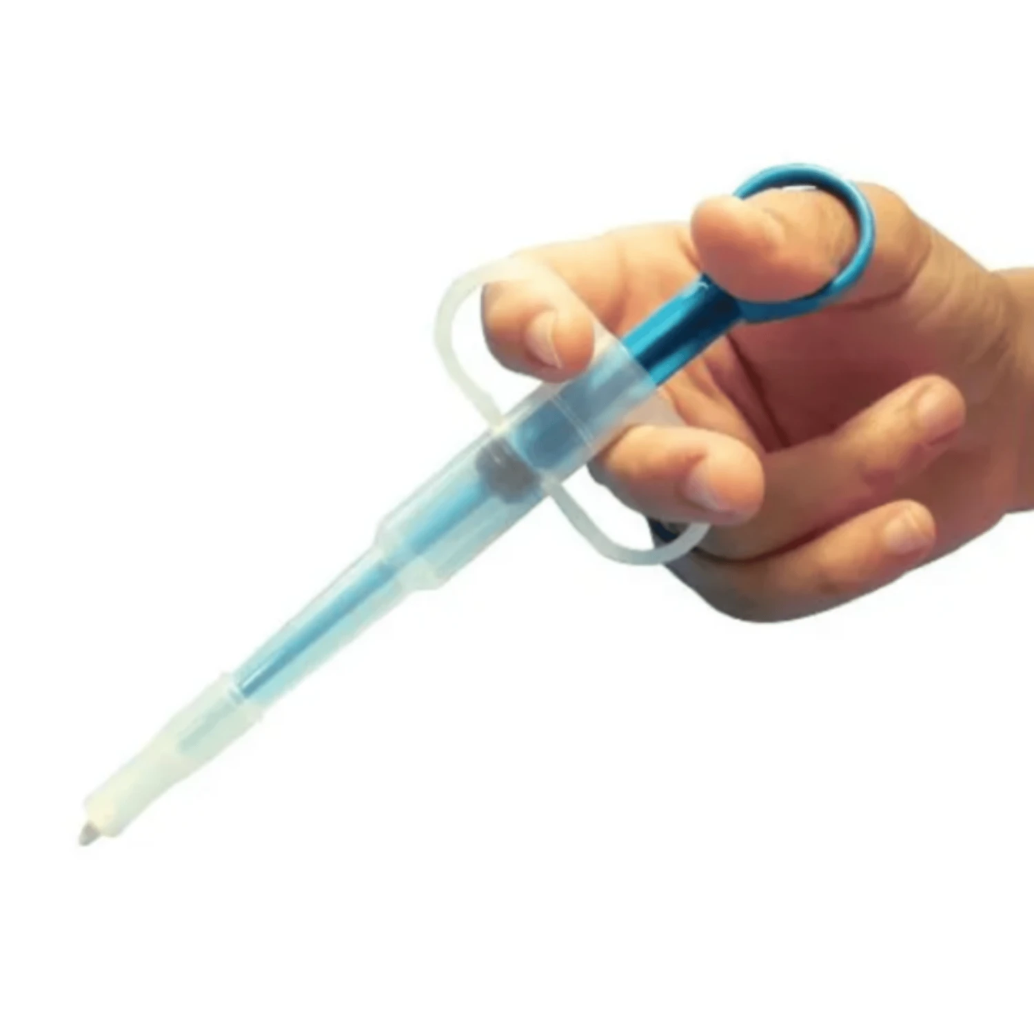 Pet piller with a soft atraumatic rubber tip end. Can be used with water to wash down the tablet.