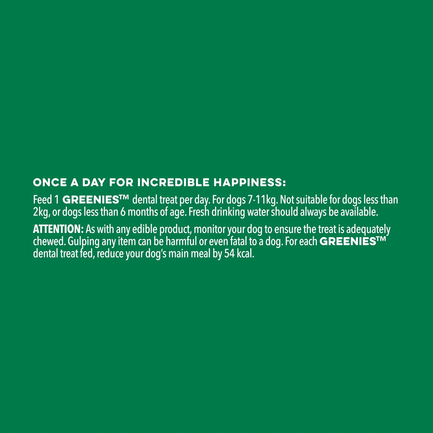 One Greenies™ Dental Chew a day helps clean your dog’s teeth by using their natural chewing action to wipe away plaque and tartar buildup from the surface of the teeth. The chewy and flexible texture allows teeth to sink in with every bite all the way to the gums for more effective cleaning. Greenies bear The Veterinary Oral Health Council (VOHC) Seal of Acceptance for plaque and tartar control.