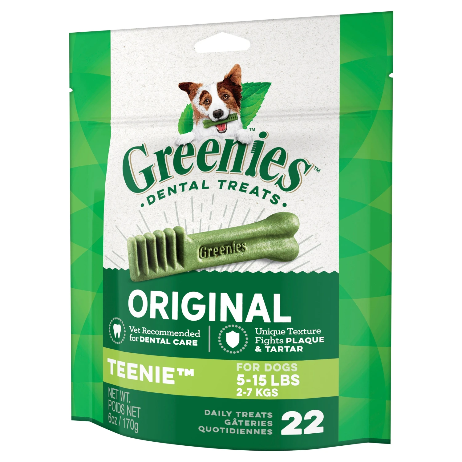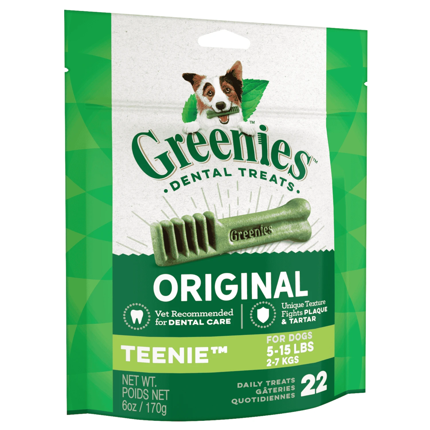 Greenies™ Dental Care Treats for dogs are vet recommended for dental care with a unique texture that fights plaque and tartar. Made from highly digestible, balanced ingredients, fortified with added vitamins and minerals. We hit the spot with complete and balanced nutrition, one treat a day is all it takes for your dog to experience the amazing effect of Cleaner Teeth, Fresher Breath and Tail Wagging Flavour.