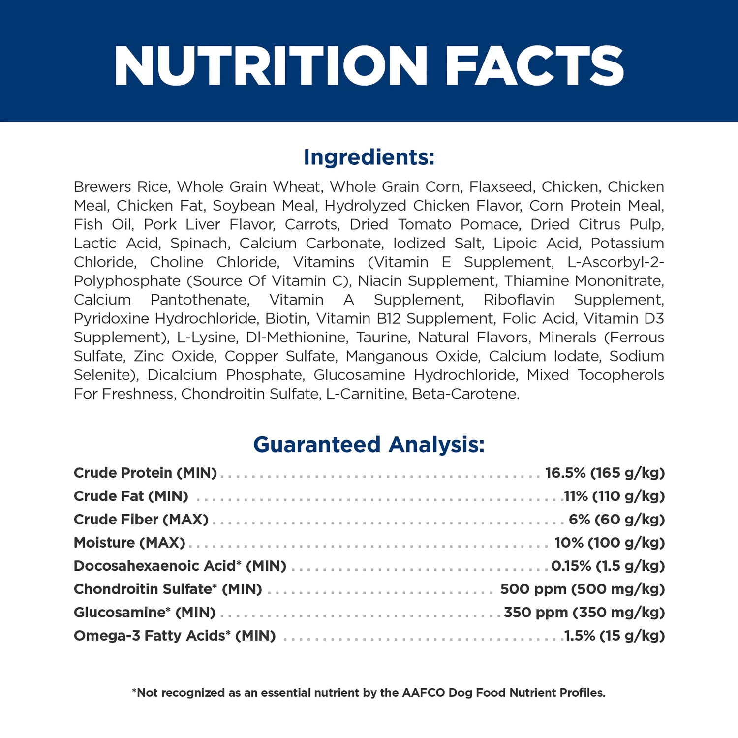 Hill’s Prescription Diet Brain Care + j/d Mobility Dry Dog Food is clinical nutrition for dogs with cognitive dysfunction and compromised mobility.