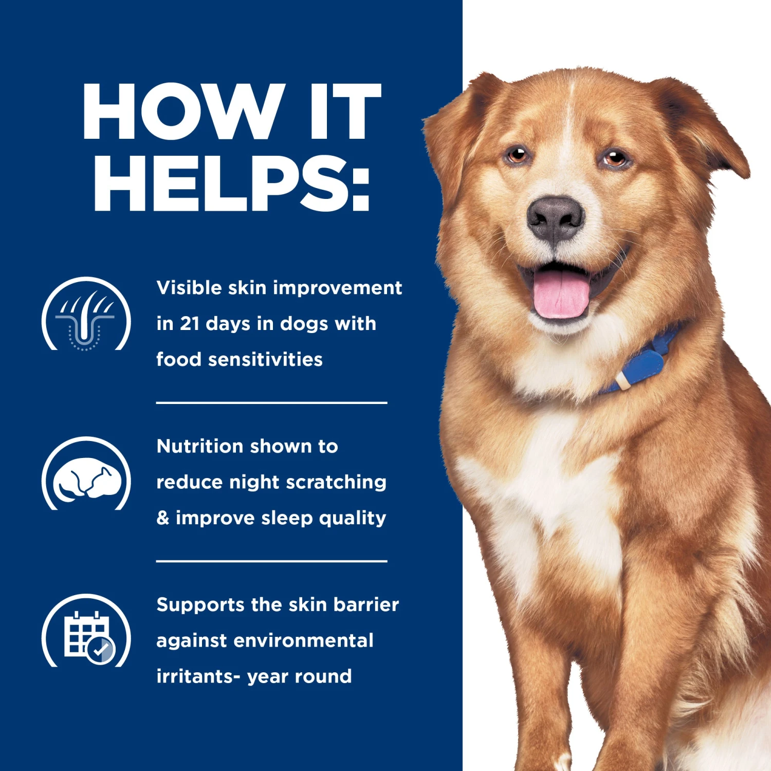 - Visible skin improvement in as little as 21 days in dogs with food sensitivities