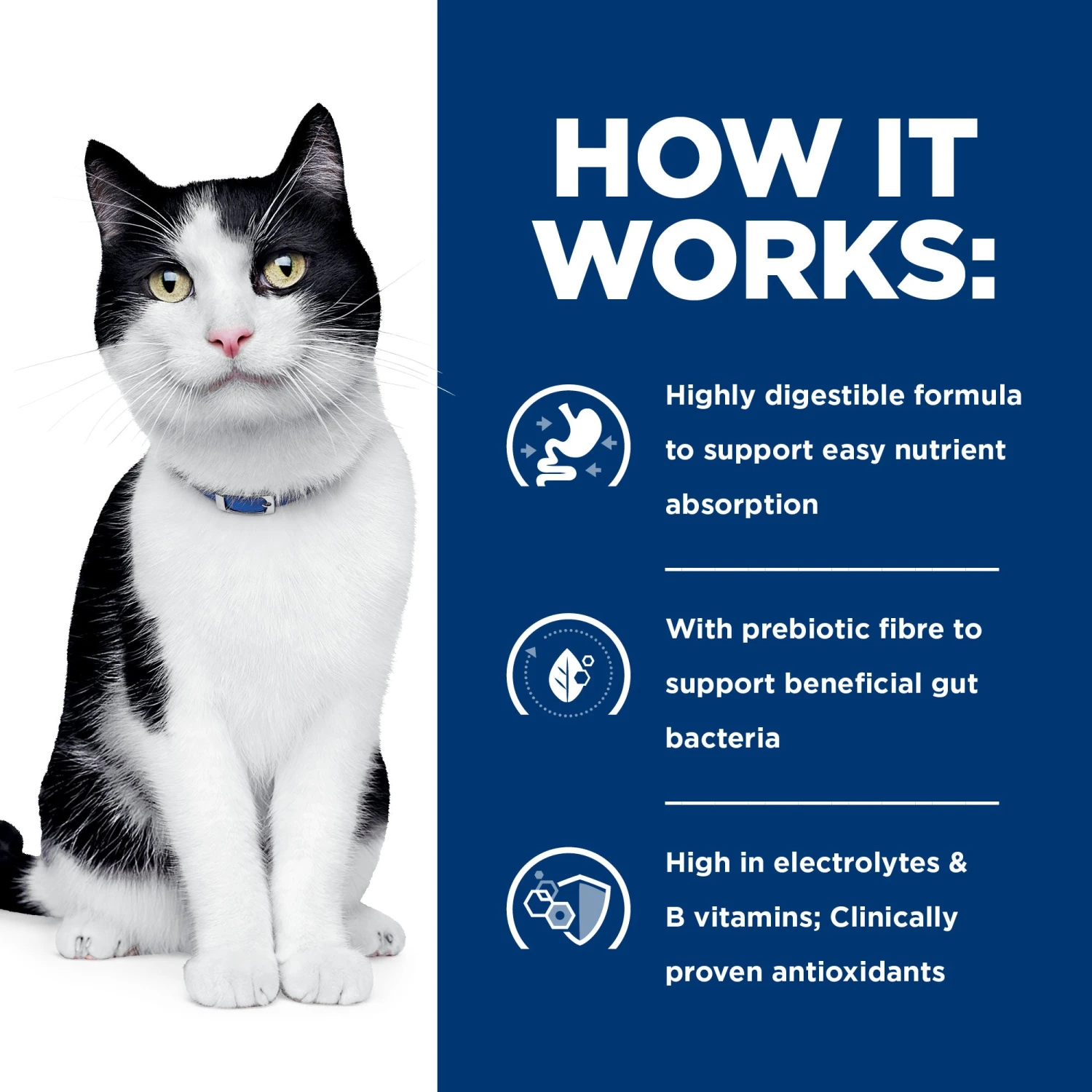 Hill’s Prescription Diet i/d Digestive Care Dry Cat Food is great tasting highly digestible nutrition clinically shown to help settle digestive upsets in cats. This dry cat food contains electrolytes and B vitamins to help replace lost nutrients. It also has clinically proven antioxidants for a healthy immune system and omega 3 & 6 fatty acids. Plus, this highly digestible formula helps ensure easy nutrient absorption. It meets the special nutritional needs of kittens and adult cats. It’s made in the USA with global ingredients you can trust, and was developed by Hill’s nutritionists and veterinarians. Please consult your veterinarian for further information on how Prescription Diet foods can help your cat continue to enjoy a happy and active life.
