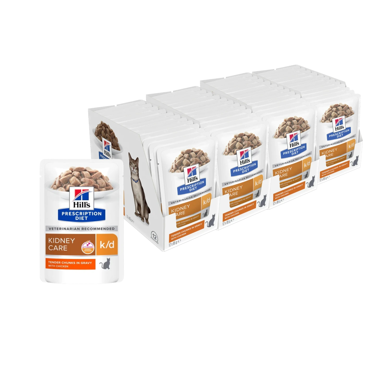 Hill’s Prescription Diet k/d Kidney Care Pouched Cat Food with Chicken is developed by Hill’s nutritionists and veterinarians to support longer and better quality of life in cats.