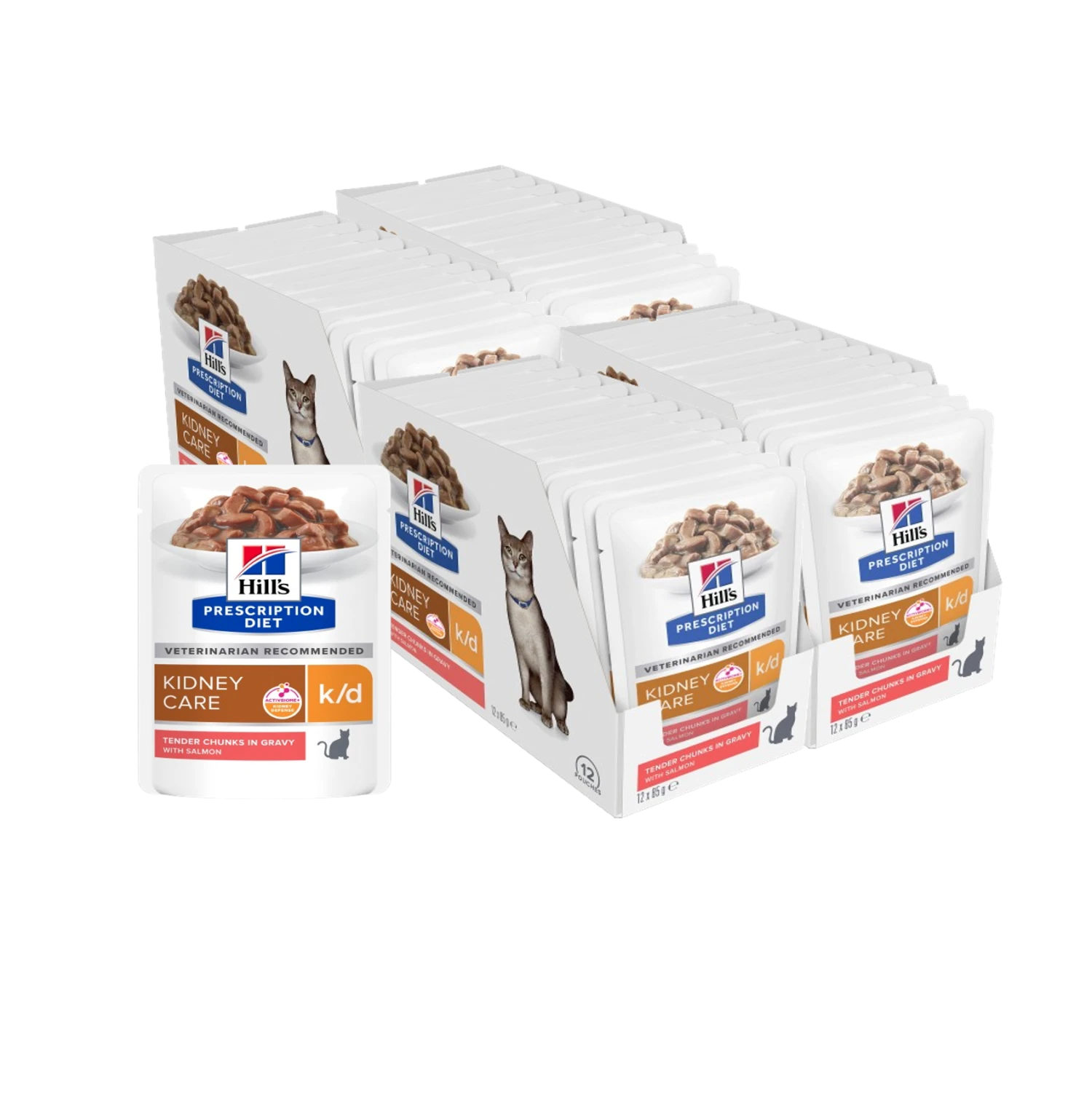 Hill’s Prescription Diet k/d Kidney Care with Salmon Wet Cat Food is clinical nutrition proven to improve and lengthen quality of life in cats. Formulated with ActivBiome+ Kidney Defense, a proprietary blend of prebiotics shown to activate the gut microbiome to help protect kidney function.