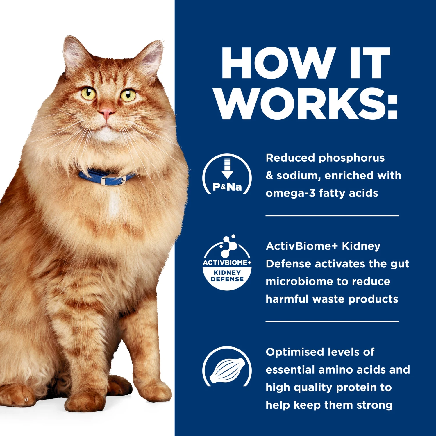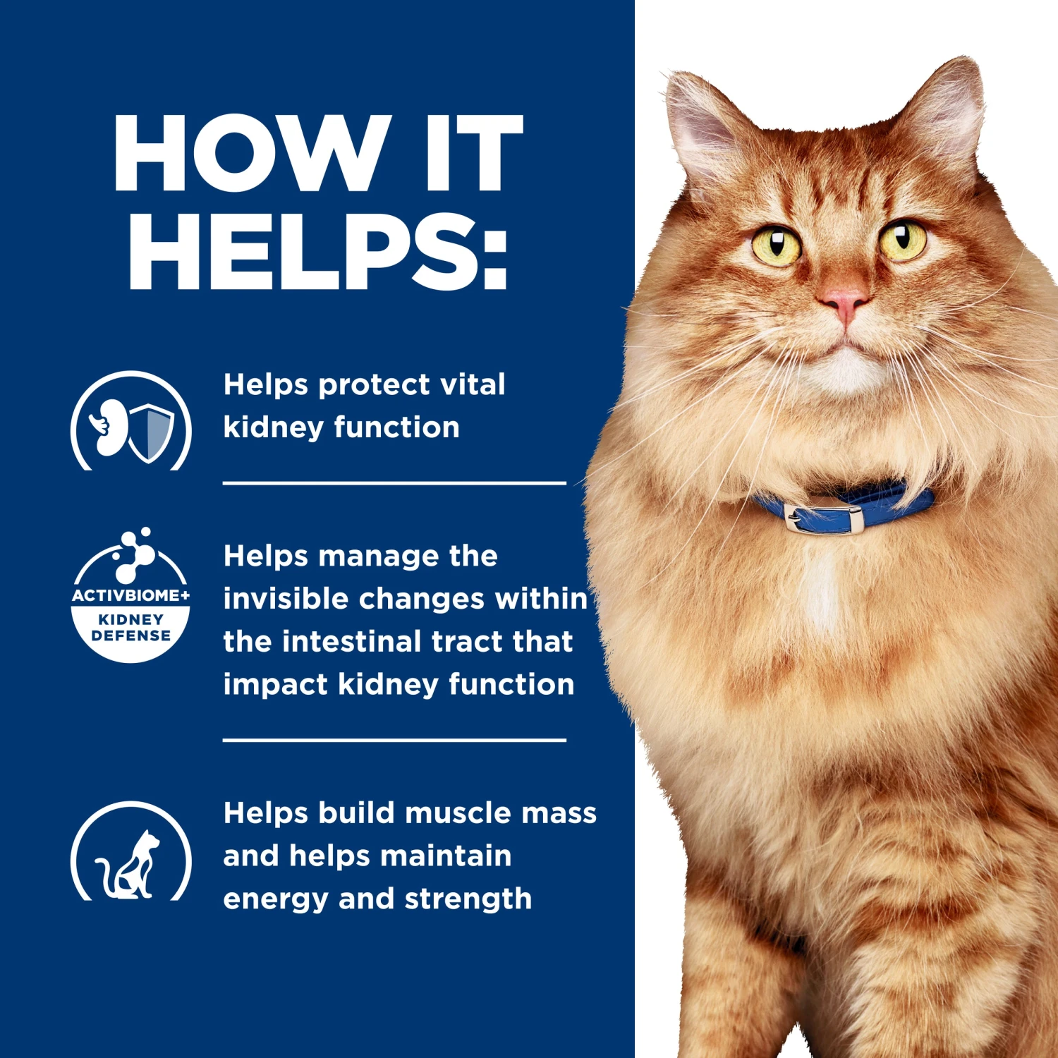 Hill’s Prescription Diet k/d + j/d is clinical nutrition to help protect vital kidney function and increase mobility in cats. Formulated with ActivBiome+ Kidney Defense, a proprietary blend of prebiotics shown to activate the gut microbiome to help protect kidney function.