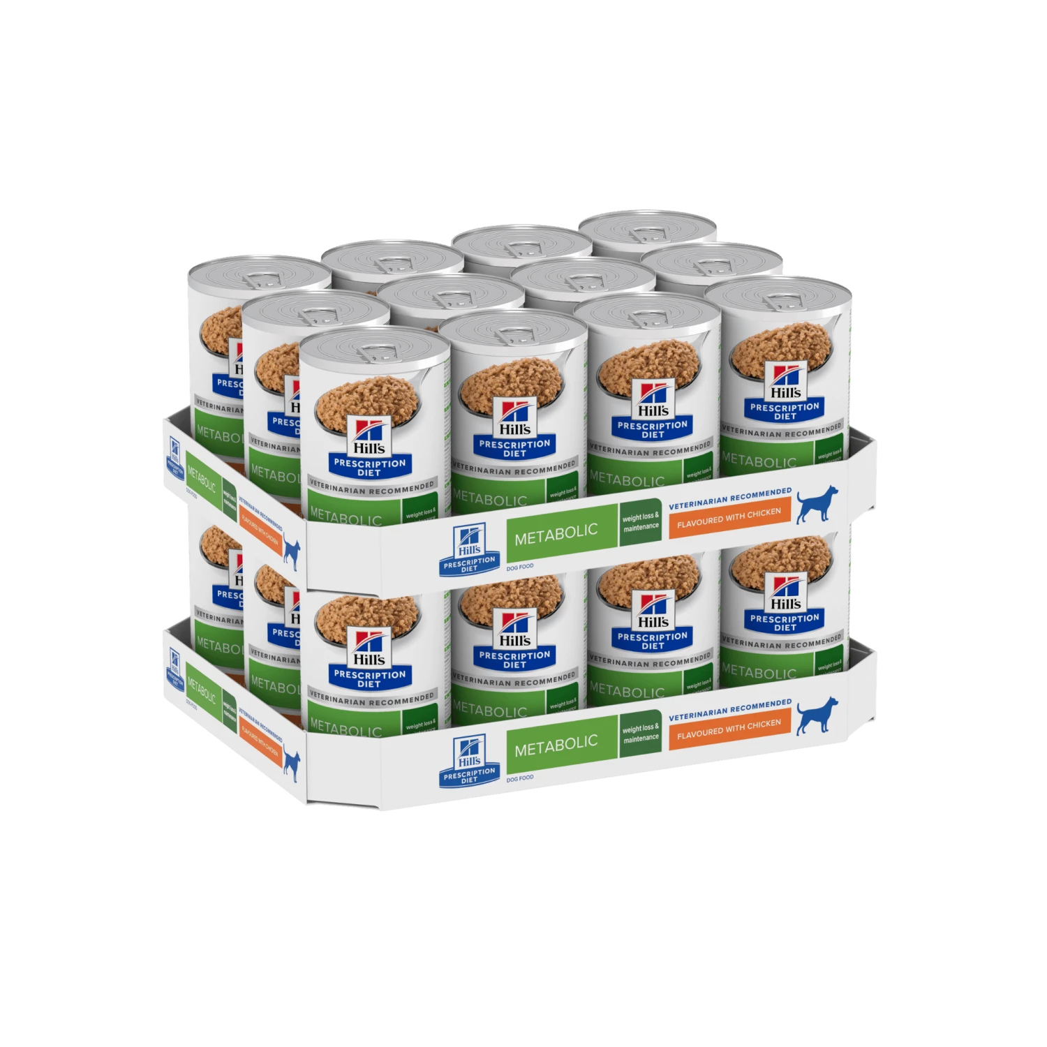 Hill’s nutritionists & veterinarians developed Prescription Diet Metabolic clinical nutrition specially formulated to help dogs lose weight and keep the lost weight off naturally by activating their unique metabolism. This food stimulates dog’s natural ability to burn fat and keep them playful & active. Its unique blend of fibre helps keep dogs feeling full and reduces food hunger between meals. In fact, 96% of dogs lost weight at home in 2 months when fed the nutrition of Metabolic. This canned food is made with chicken and has a ground texture with an irresistible taste that your dog will love.