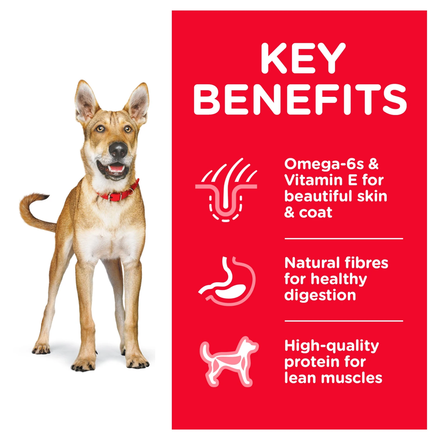 Hill’s Science Diet Adult dry dog food provides high quality, easy-to-digest ingredients that fuel the energy needs of your adult dog. Packed with omega-6s & vitamin E to give your dog healthy skin & coat, this premium dog food made with natural ingredients also provides high-quality protein to help your full-grown dog maintain muscle. Since adult dogs need a strong gut, this grown dog food uses natural fibres to promote healthy digestion.