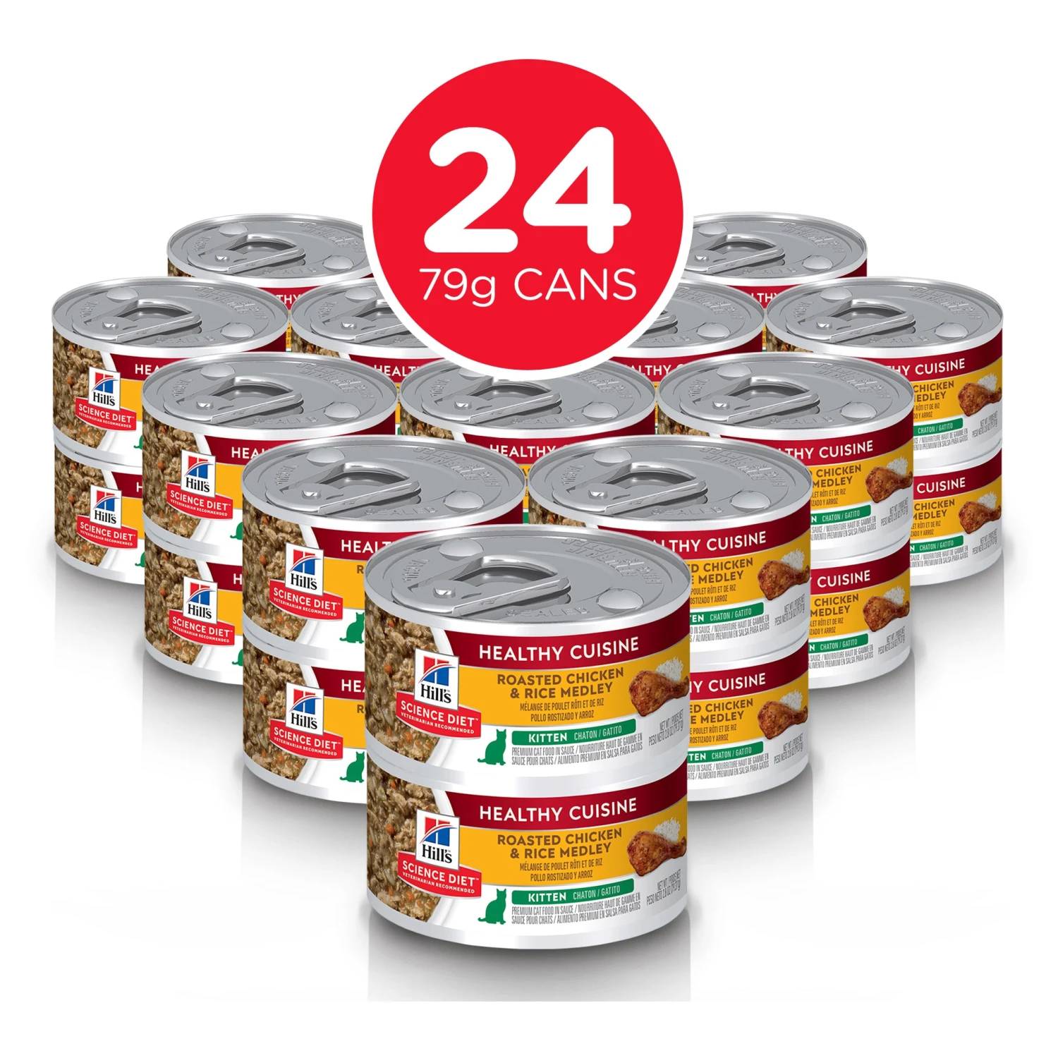 Science Diet Feline Adult Healthy Cuisine Canned food contains tasty morsels of chicken or tuna and tender vegetables in a mouthwatering sauce for a perfect balance of taste and nutrition.