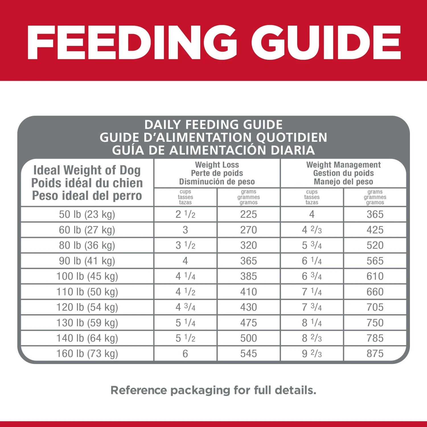 Putting your grown dog on a calorie restricted diet can be difficult for you and your canine companion. That’s why Hill’s Science Diet Perfect Weight Large Breed Food provides delicious, breakthrough weight management nutrition that your full grown dog can enjoy. With protein for lean muscle maintenance and clinically proven results in just 10 weeks, this weight control dog food made with natural ingredients is the perfect addition to your adult dog’s bowl. This healthy weight dog food is formulated with decades of cutting-edge research to be a great-tasting meal your grown dog can truly enjoy.