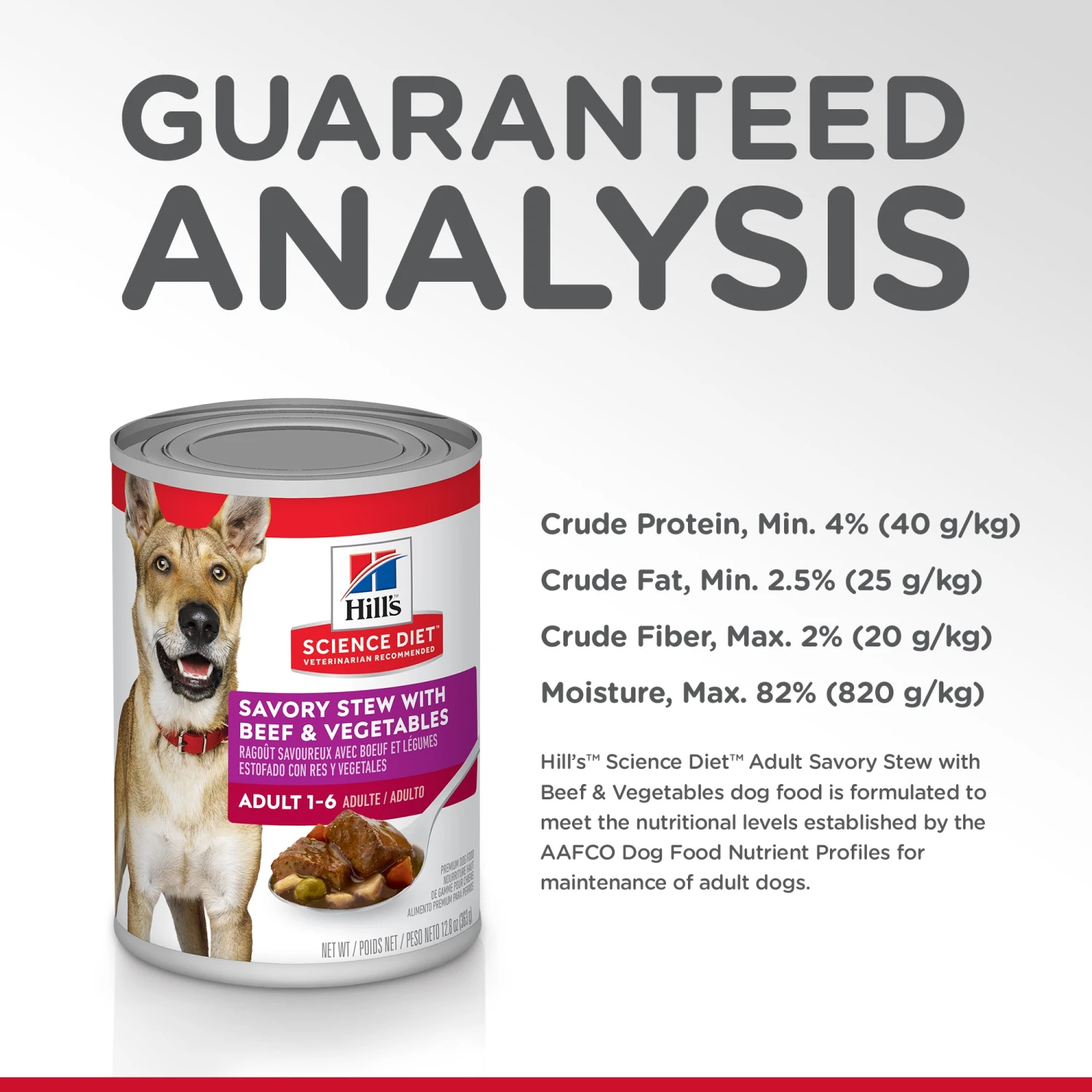 Science Diet Canine Adult Savoury Stew (canned) foods are a delicious complement to the superior nutrition of Science Diet dry dog food. Made with real meat, brown rice, and a medley of delectable vegetables including peas and carrots, all smothered in a delicious gravy.