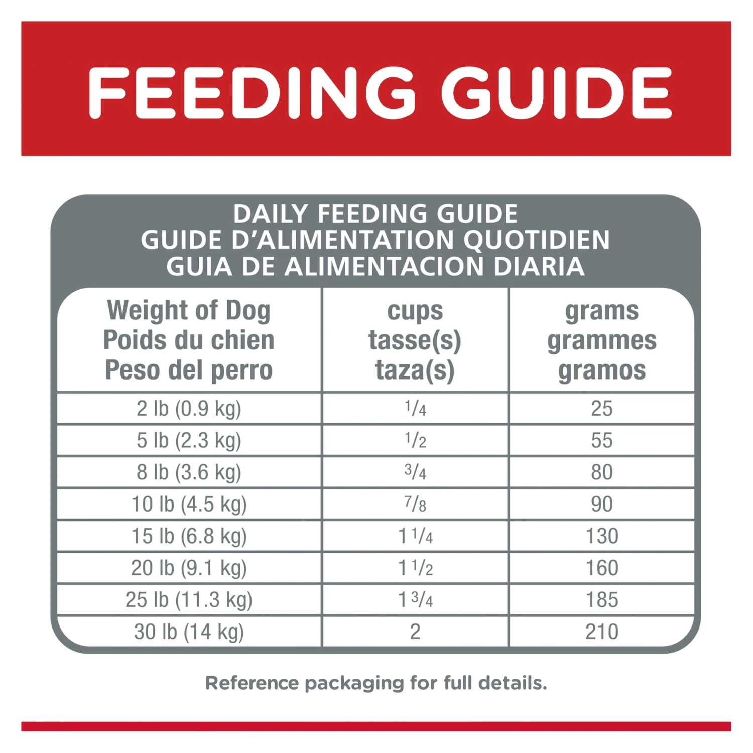 Little dogs have their own needs when it comes to meal time, so give your small breed dog a pet food that is big on love, and small in size. Hill’s Science Diet Small Paws adult dry dog food is tailored nutrition for the unique needs of small & mini dogs during the prime of their life. Delicious lamb flavour for those that prefer variety & specially made with nibble size, small kibble. This dog food is made with natural ingredients and contains omega-6s and vitamin E to nourish your dog’s coat and skin. Balanced levels of high-quality protein help your small or little-breed dog maintain lean muscle, while the proprietary antioxidant blend supports the immune system for lifelong health.