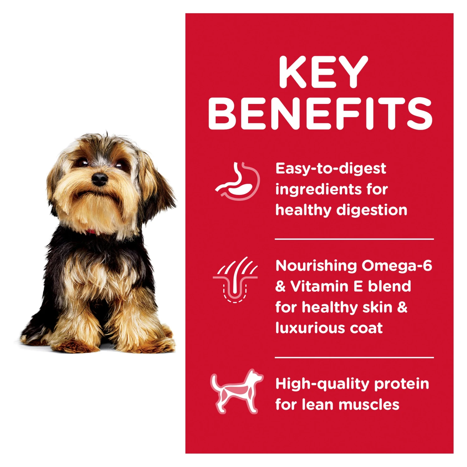 Hill’s Science Diet Small Paws Adult dry dog food is tailored nutrition for the unique needs of Small & Mini dogs during the prime of their life. Delicious lamb flavour & specially made with small, nibble size kibble.