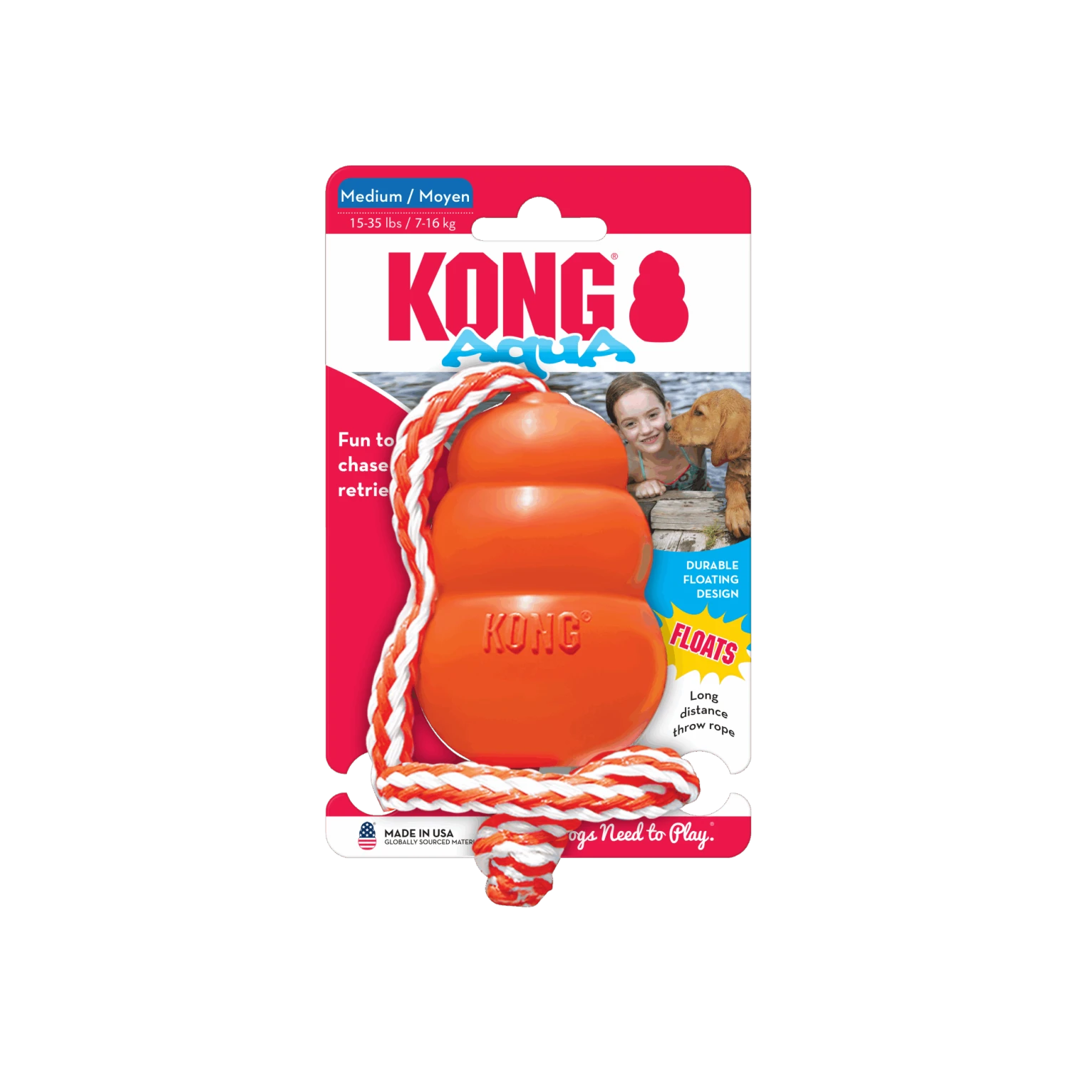 KONG Aqua, formerly the Cool KONG, is a floating retrieval toy that promotes fun and exercise both in and out of water. The Kong Aqua has a foam core that keeps it floating while your dog swims out to fetch it.