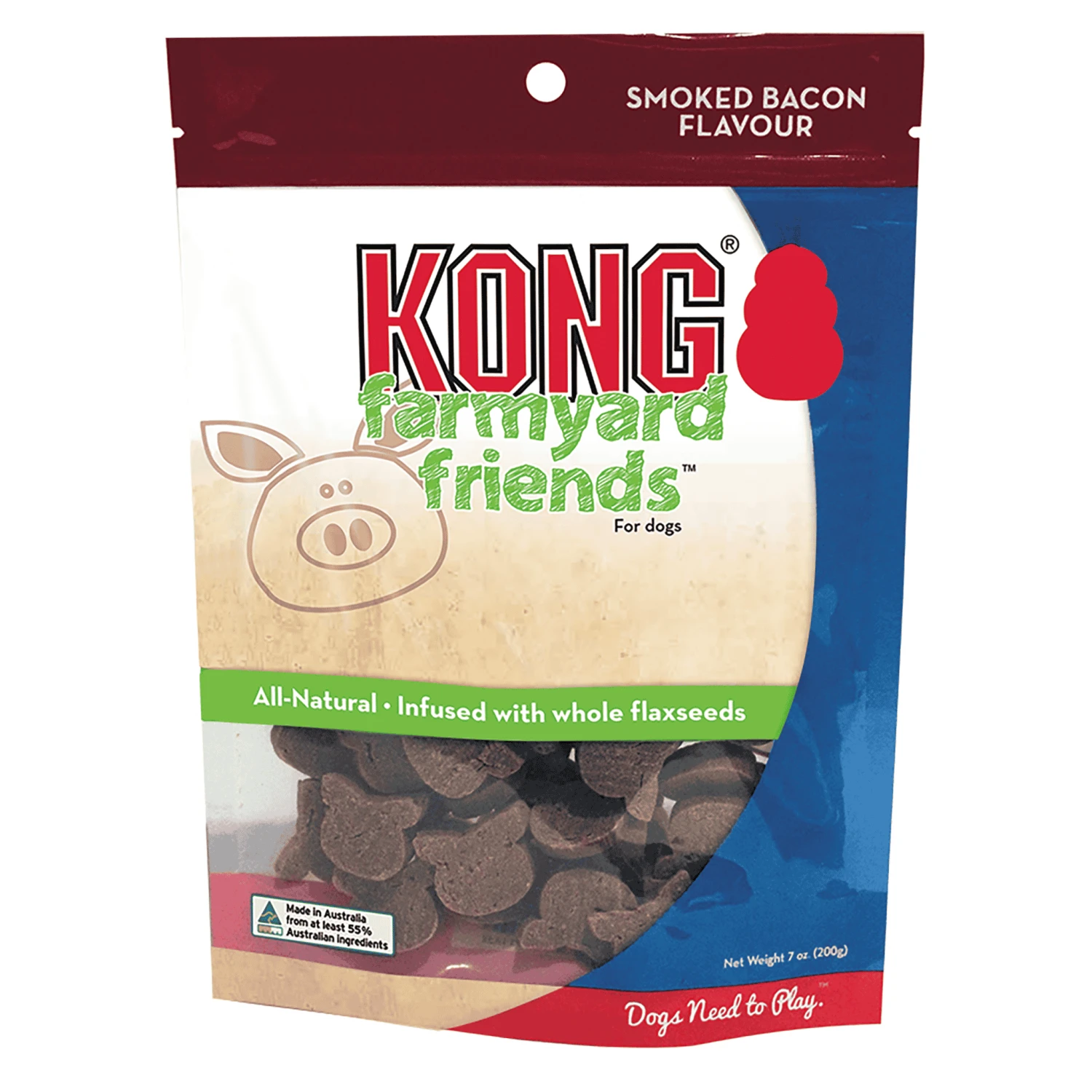 KONG Farmyard Friends Smoked Bacon dog treats are sure to keep dogys engaged and eager for more while the All-Natural ingredianets allow you to feel good about their reward. Made in Australia with Australian ingredients, these meat first and grain-free treats are also packed with an irresistible flavour that make them ideal for training or those ‘just because’ rewards. They are also great as an enticing reward stuffed into a KONG Classic dog toy.