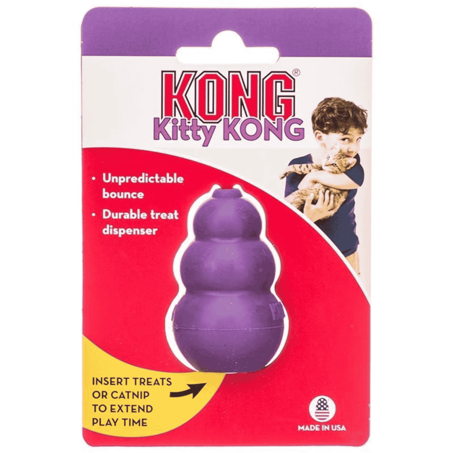 KONG’s Kitty KONG Treat Dispensing Cat Toy sparks your cat’s curiosity and stimulates its natural hunting instincts all at once. Just put some KONG Easy Treat, catnip or your cat’s favorite snack into the toy and watch your cat go wild getting it out! This toy is lightweight and takes erratic bounces – perfect for batting, bouncing and chasing.