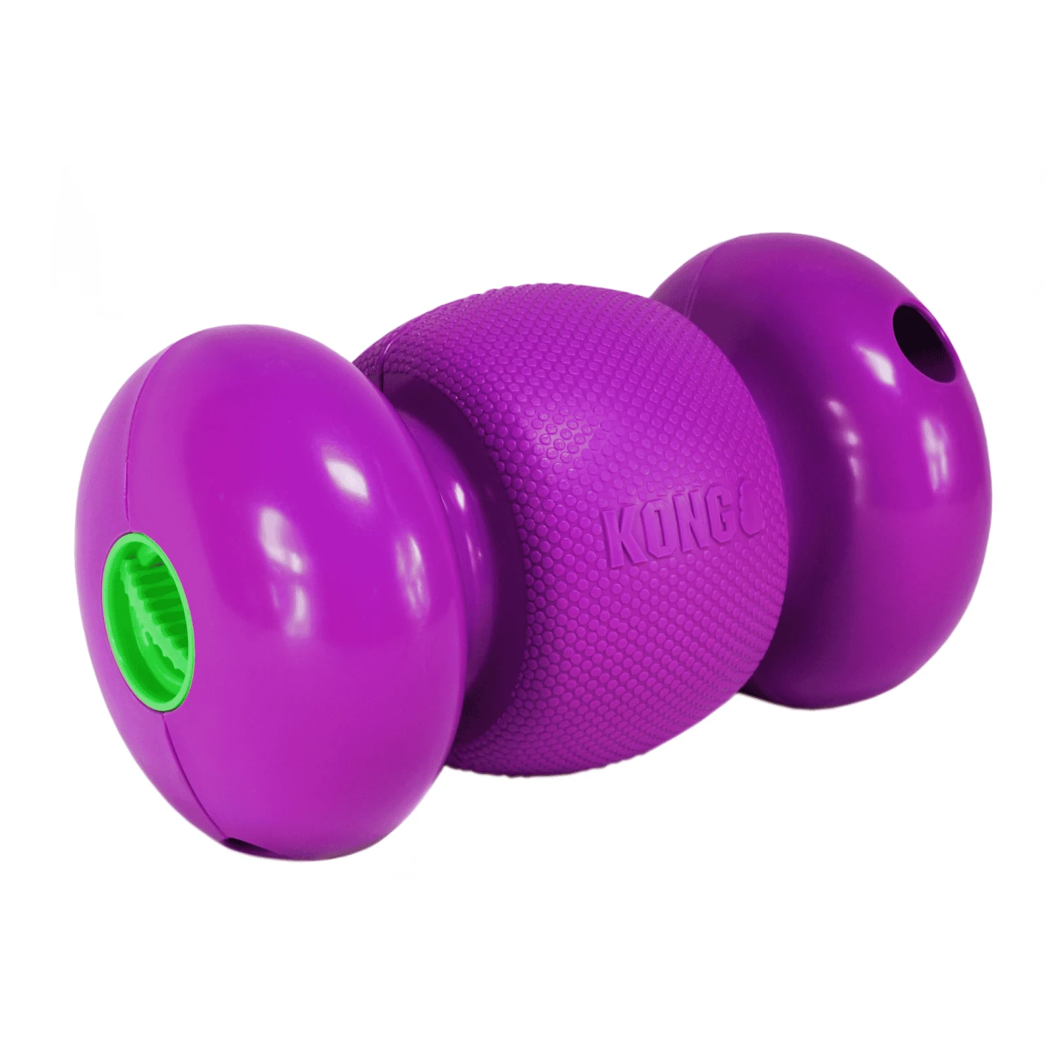 When a dog pushes the Kong Replay, this next generation of treat-dispensing toy rolls away—then rolls back on its own. Completely paw powered, the irresistible return motion engages the savviest of pups, inviting them to push again, fueling more rollback fun. As Kong Replay rolls, it dispenses treats that reward paw-powered motion while providing healthy mental and physical stimulation. This unique, self-returning toy has two treat-dispensing ports that double the deliciousness as dogs engage and play with the toy that actually plays back.