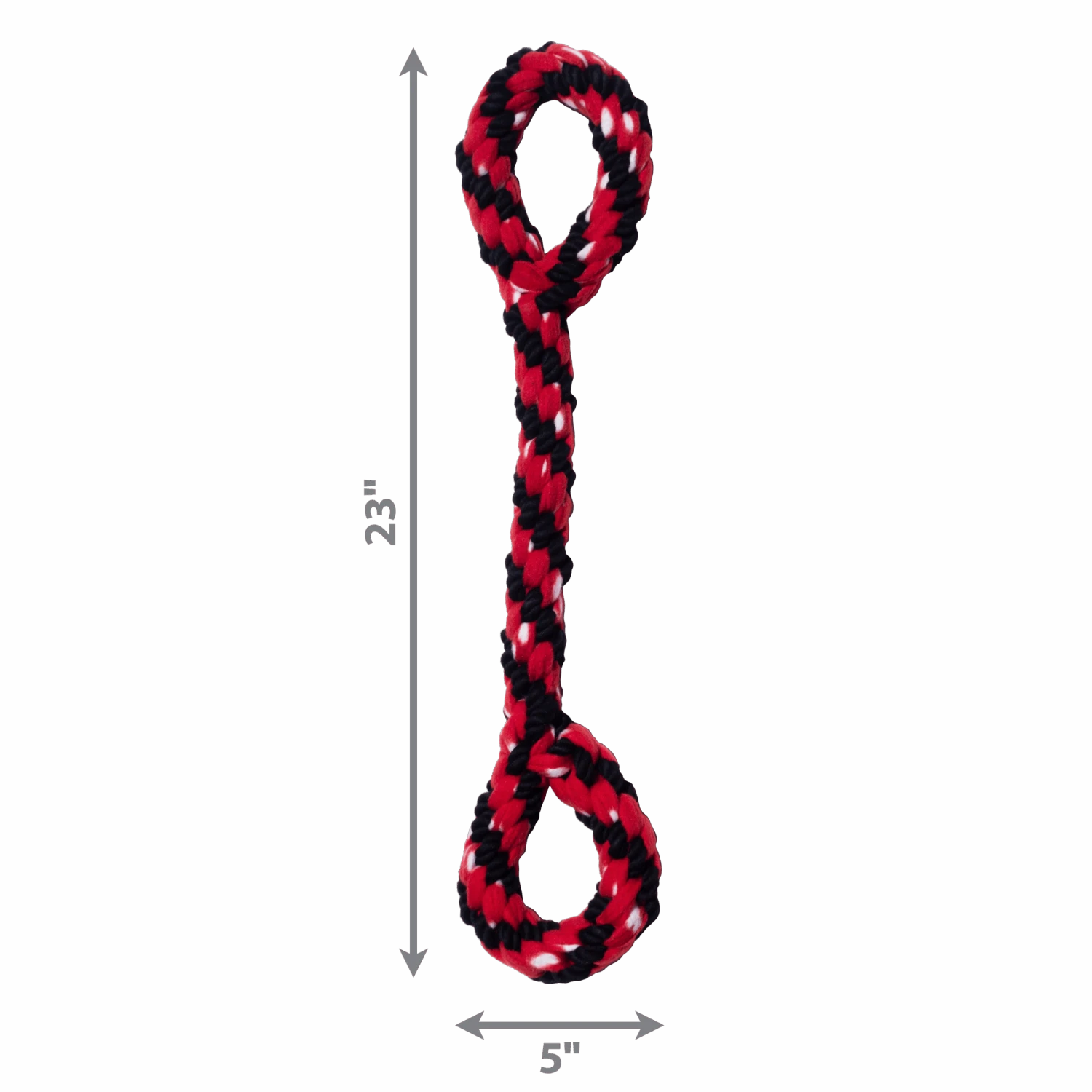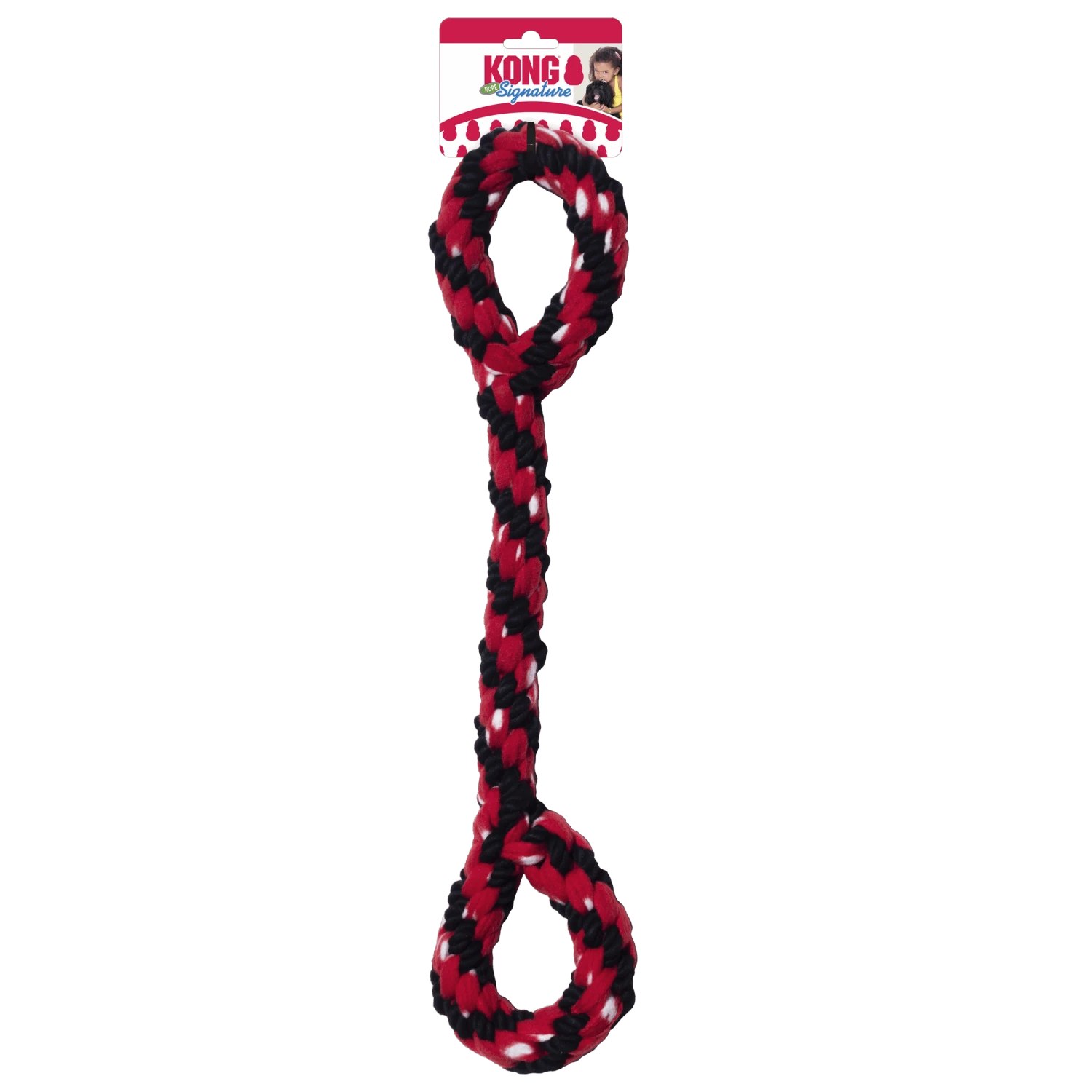 KONG Signature Double Tug Rope doubles the fun with a unique braid of cotton and fleece that provides an uncompromised stretchy delight that is gentler on a dog’s mouth. The durable material ensures that natural chewing behaviour is rewarded again and again with the added benefit of helping clean teeth. The double rings multiply interactive playtime by making games of instinctual tugging even more engaging.