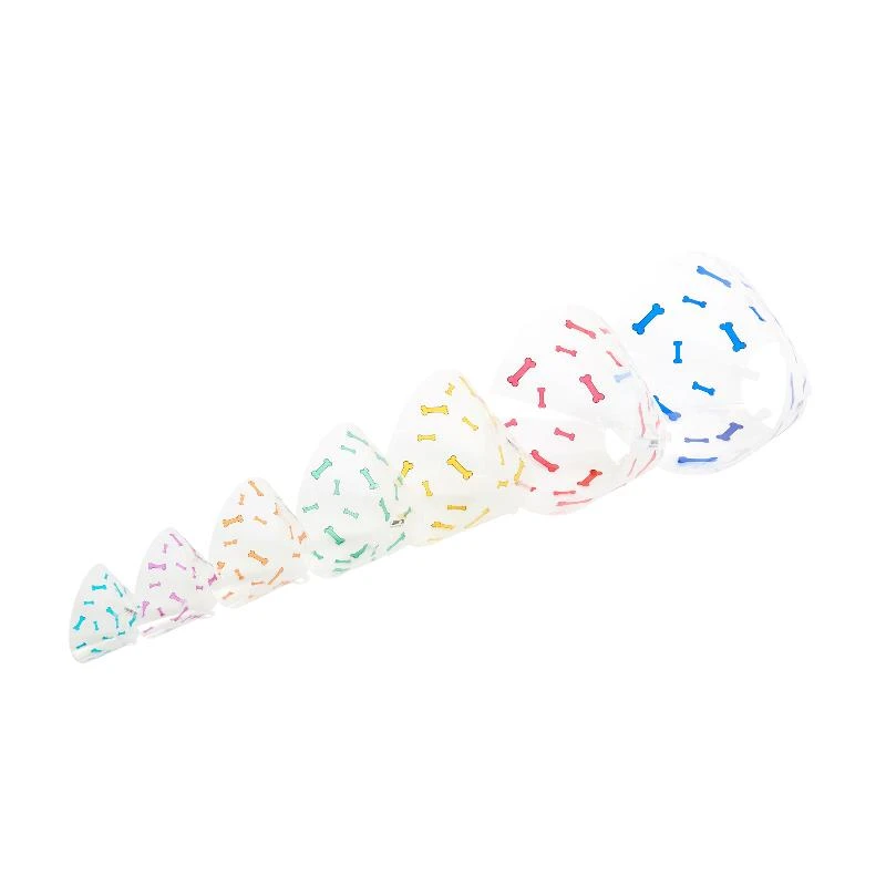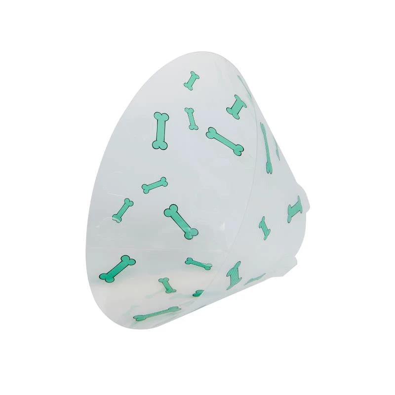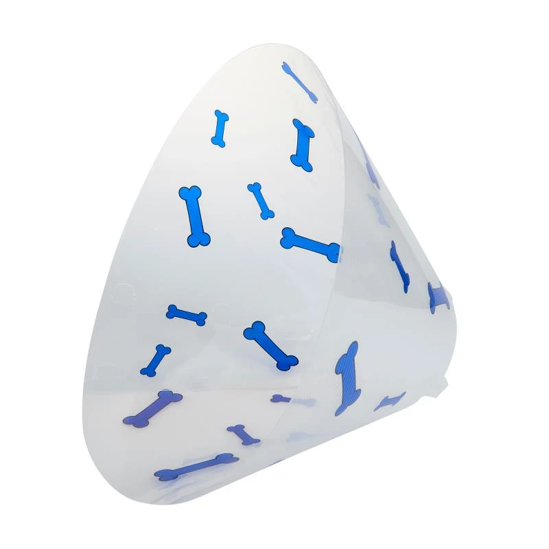 The collar is a printed collar with bones in eye-catching colours; one colour for each size of collar for easy recognition.