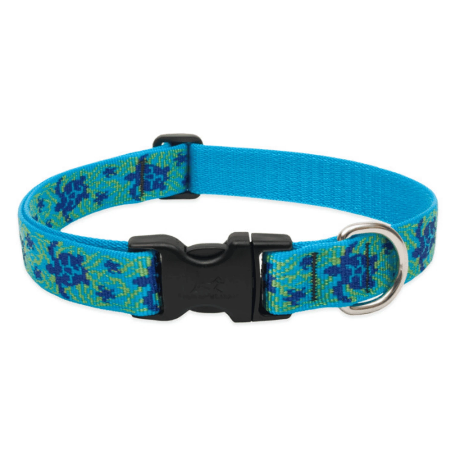 Dog Collars in sizes to fit every pup and seen here in our best-selling Original Designs. Perfect everyday collar for your dog, adjustable in size and featuring a d-ring for easy leash or Pet ID tag attachment. A traditional flat collar, available in 3 widths including 1.3cm, 1.9cm and 2.5cm, dozens of popular designs and several adjustable size ranges to fit every size dog, XXS collars to XXL collars.