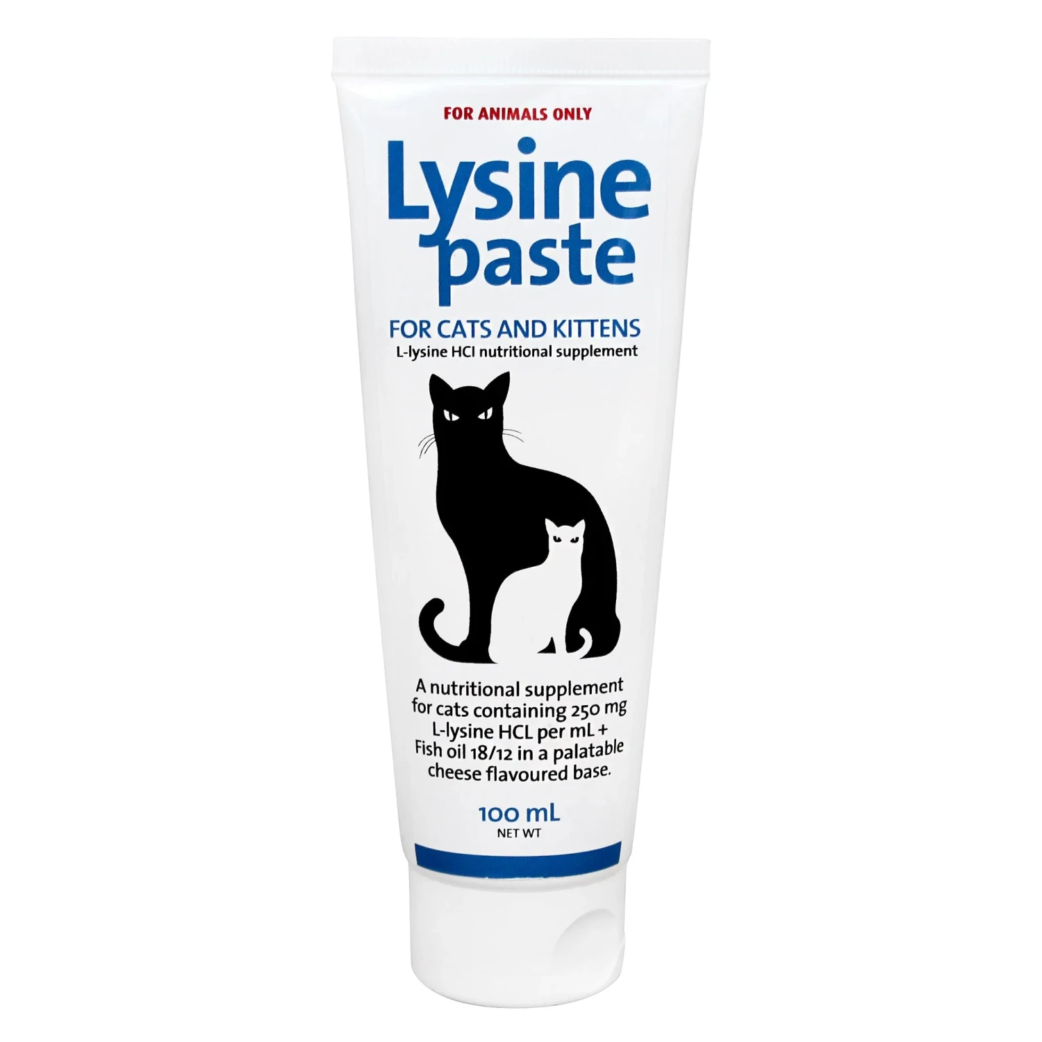 Squeeze tube and administer a 2cm strip to cats paws. Allow cat to lick product off paw. Lysine Paste can also be added to feed. Daily administration will reduce the likelyhood of an episode.