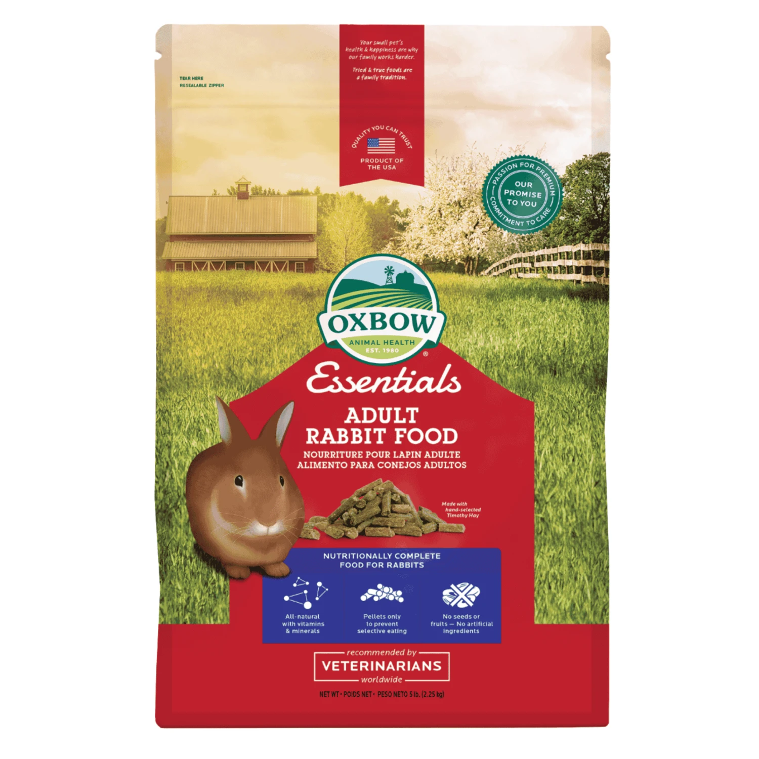 Oxbow Essentials Rabbit Foods provide your rabbit with fibre as well as a good balance of protein and amino acids to keep them healthy and meet their nutritional requirements. Rabbits are strict herbivores and a diet high in fibre is essential for maintaining good health. Feed Essentials Rabbit Foods in combination with grass hays to ensure a healthy, balanced diet for your rabbit.