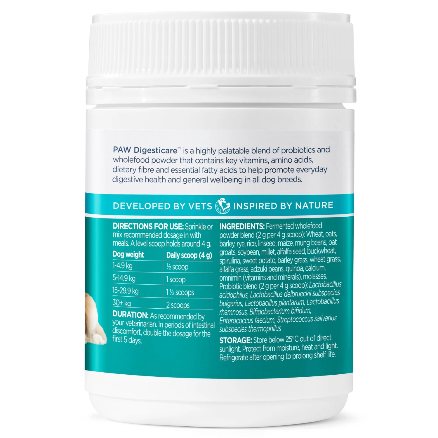 PAW DigestiCare contains an enhanced fermented wholefood powder with a NEW blend of resistant starch, enzymes and spore-forming probiotics.