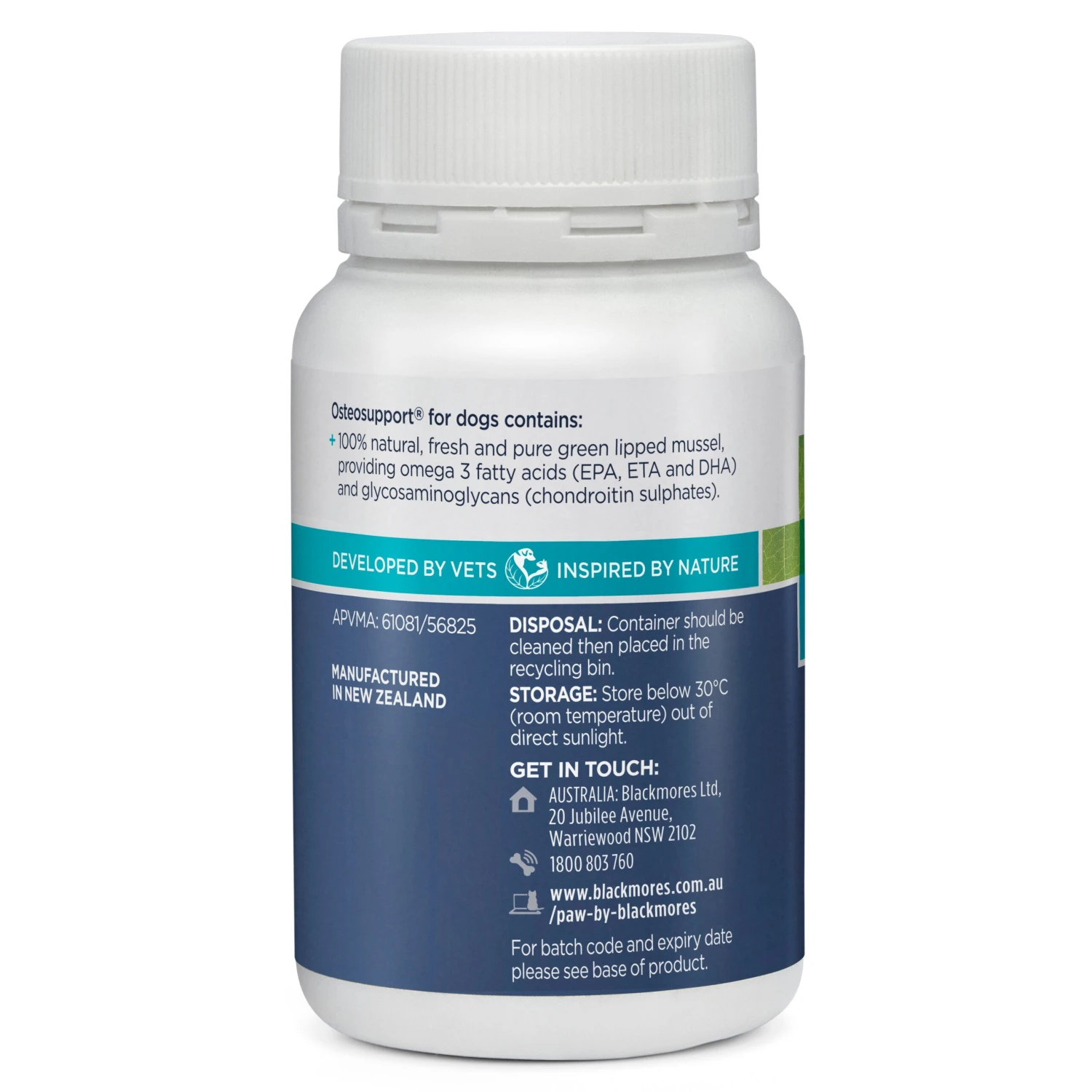 PAW Osteosupport Joint Care Powder capsules with Pern128® (fresh NZ Green-Lipped Mussel) may provide relief from the symptoms of osteoarthritis in dogs by reducing pain and inflammation in the damaged joint and assisting in repairing damaged cartilage.