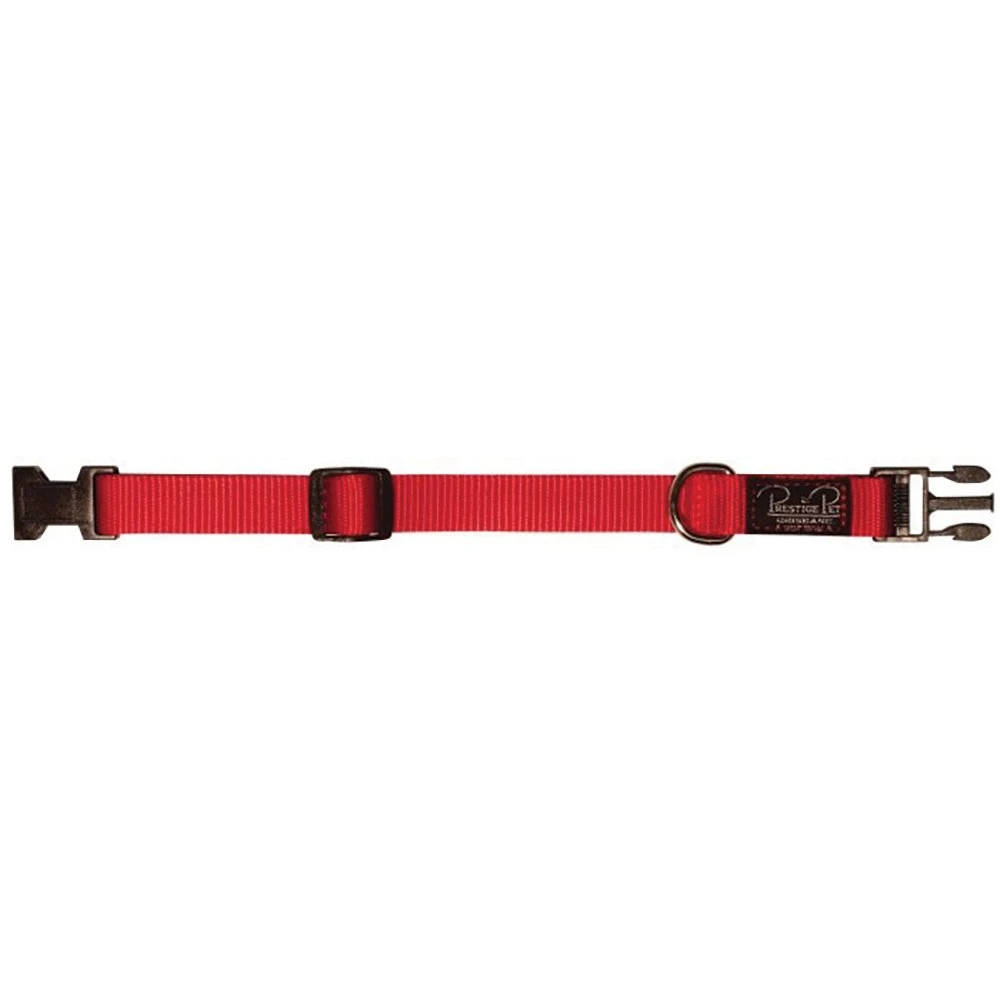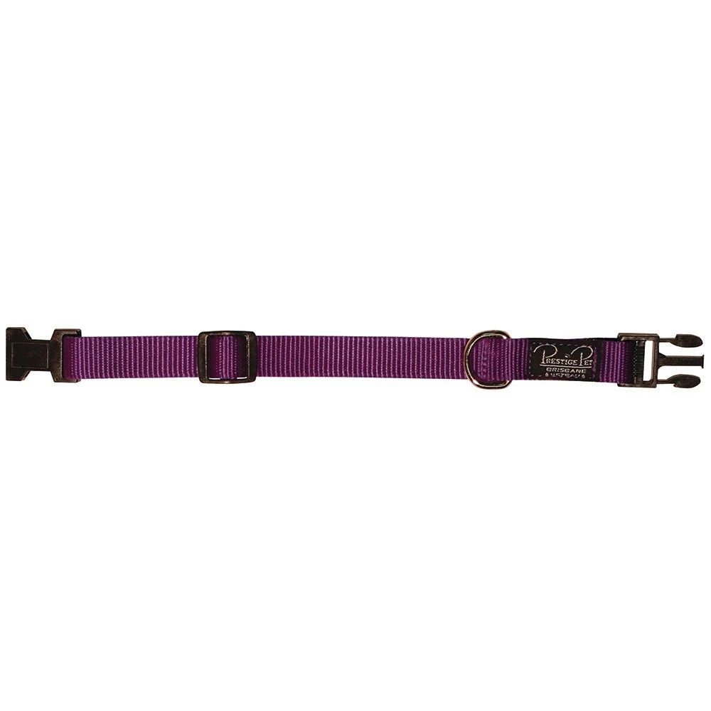 Prestige Adjustable Nylon Collars are made from single ply premium quality. The design provides convenient fast and easy buckle up and is the ideal collar for growing pets. Box stitched at stress points to provide ultimate strength, they feature black nylon contoured quick release buckles with nickel plated dees.