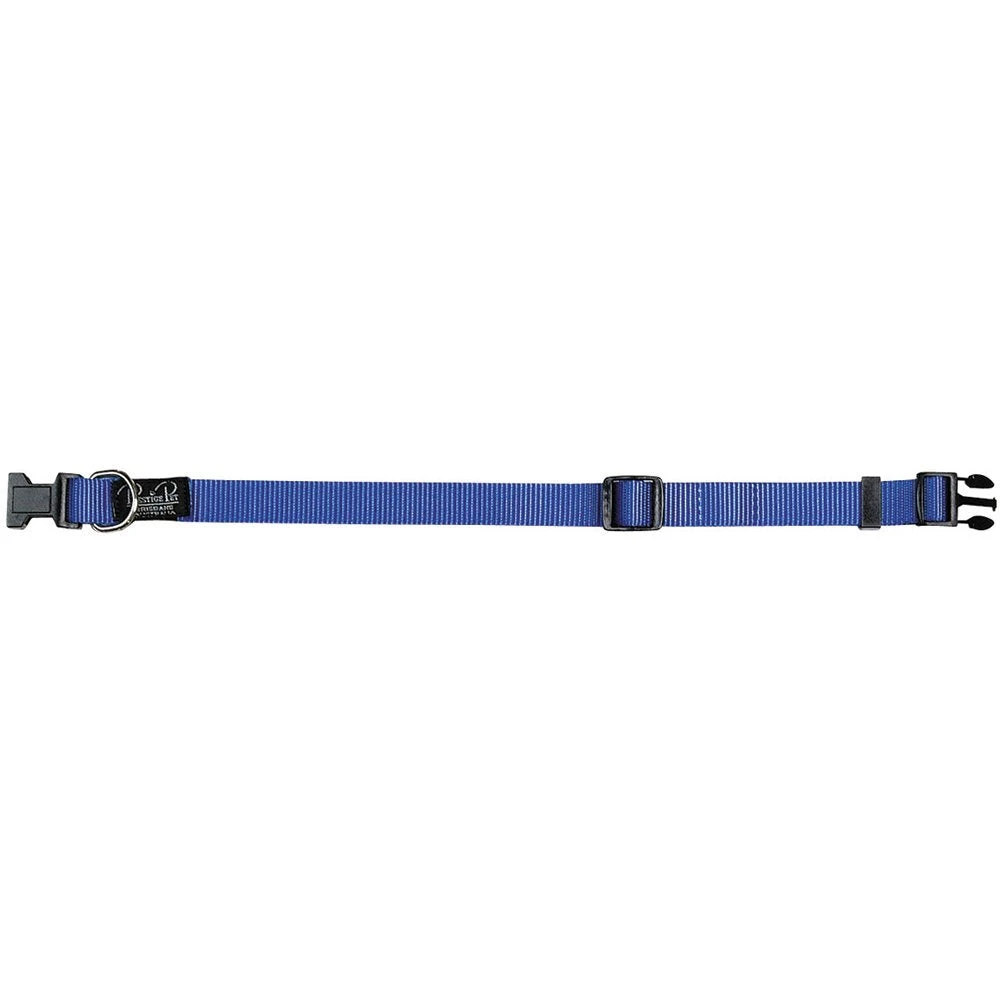 Prestige Adjustable Nylon Collars are made from single ply premium quality. The design provides convenient fast and easy buckle up and is the ideal collar for growing pets. Box stitched at stress points to provide ultimate strength, they feature black nylon contoured quick release buckles with nickel plated dees.