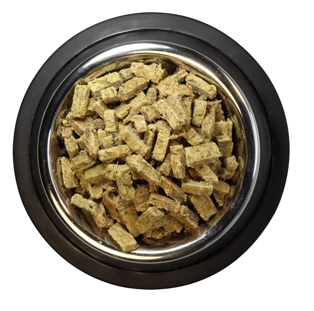 This is our Skin and Growth range, made with 100% Australian ingredients. The diet is designed to provide a novel source of protein, prebiotic and fibre for dogs. The product has been formulated to improve and maintain skin health, whilst aiding in digestion through the added natural digestive enzymes and fibre.