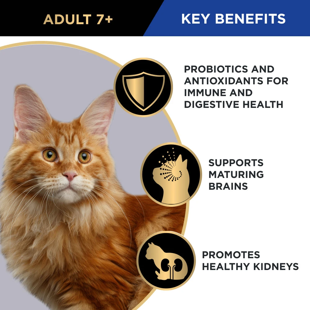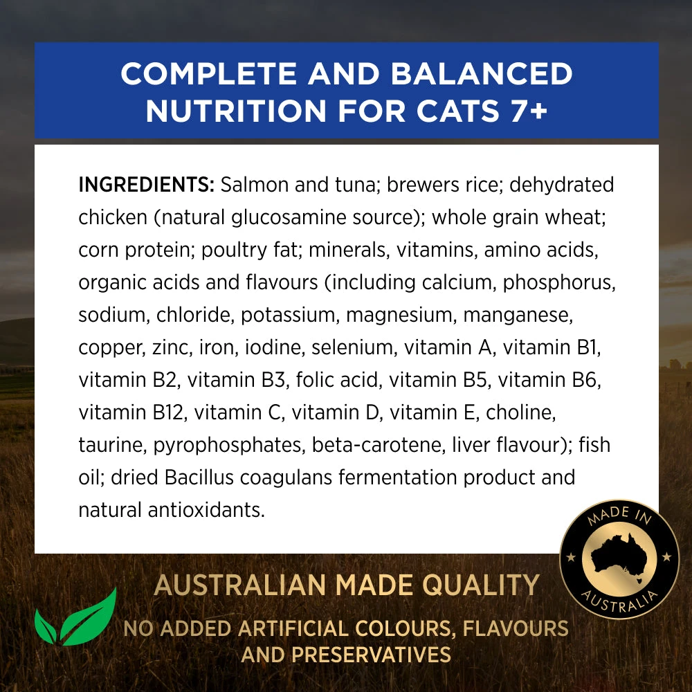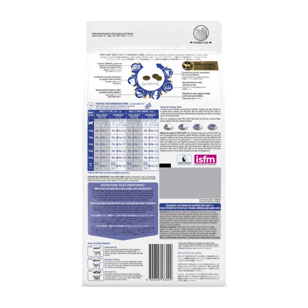 Pro Plan® Adult Cat 7+ Salmon & Tuna Dry Cat Food, combines all essential nutrients including vitamins A, C and E, also Omega 3 and 6 Fatty Acids in a high quality diet for cats.