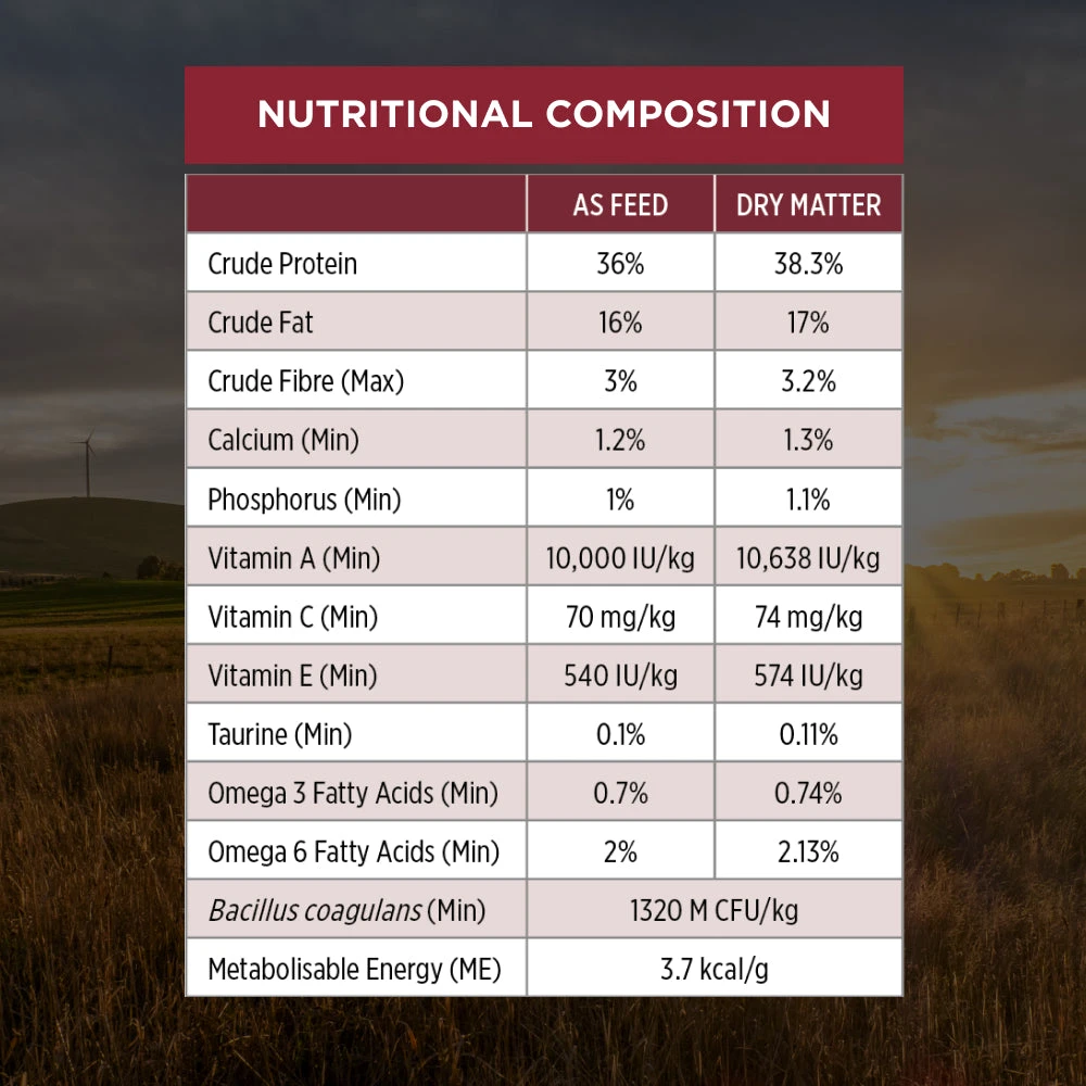 - Feline Premium Nutrition Plus Vitamins, Minerals and Amino Acids.