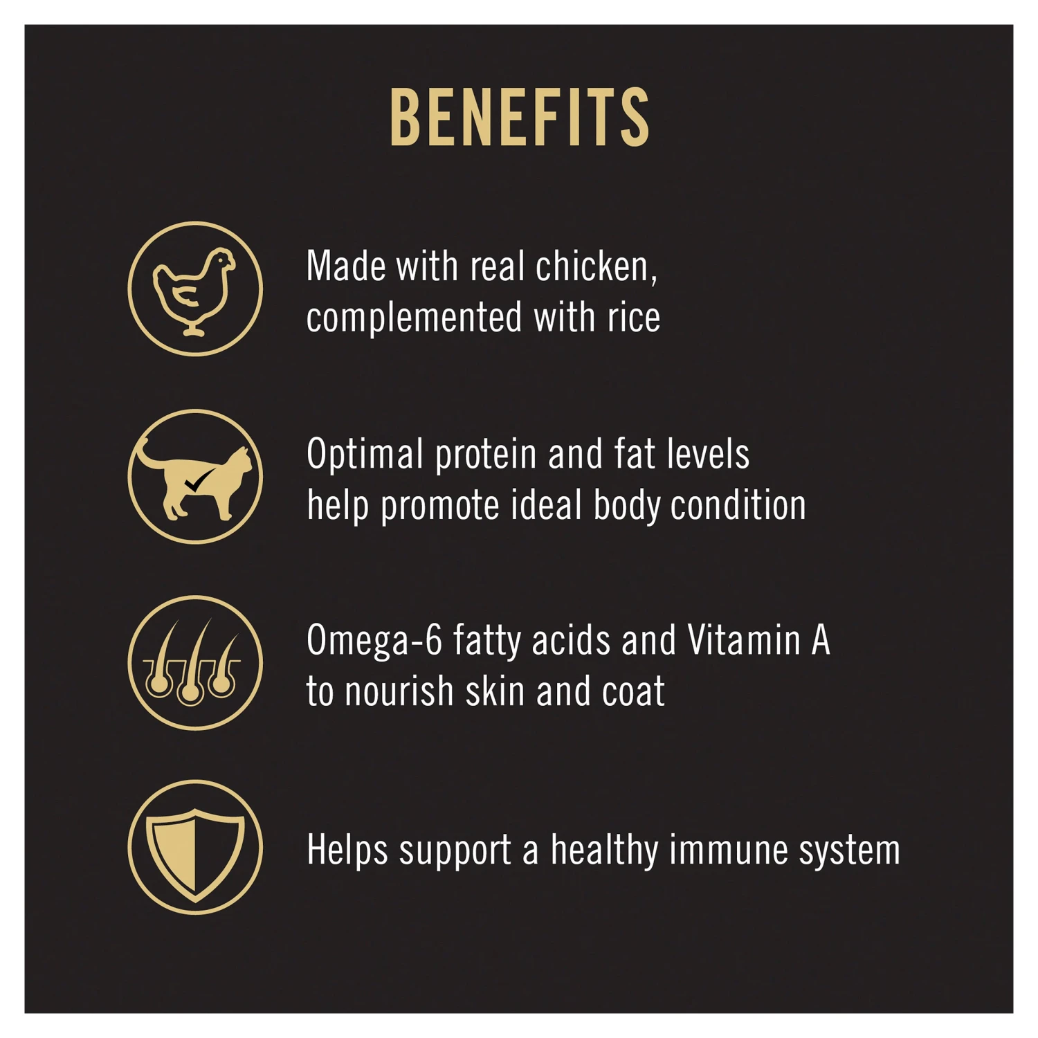 • Optimal protein and fat levels help promote ideal body condition
